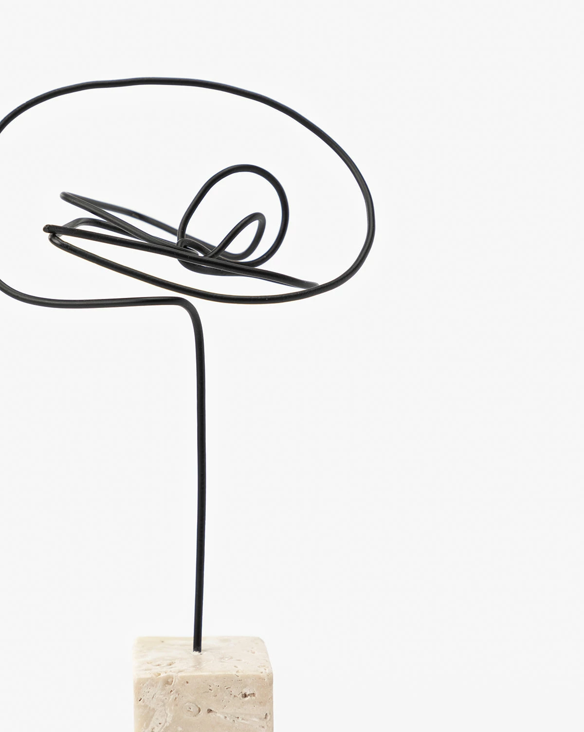 Abstract and captivating, the Aguilar Standing Object is a unique take on contemporary decor. Its black knotted element is creatively designed while the travertine base brings a sophisticated yet natural element to your vignettes.