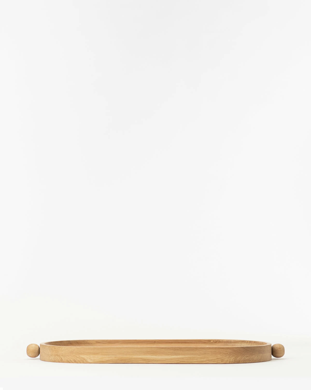 The Allard Wood Serving Tray brings detail to everyday serveware. Crafted from wood in a natural finish, this elongated, shallow tray has small handles that bring moments of detail and practicality to the piece’s structure and design.