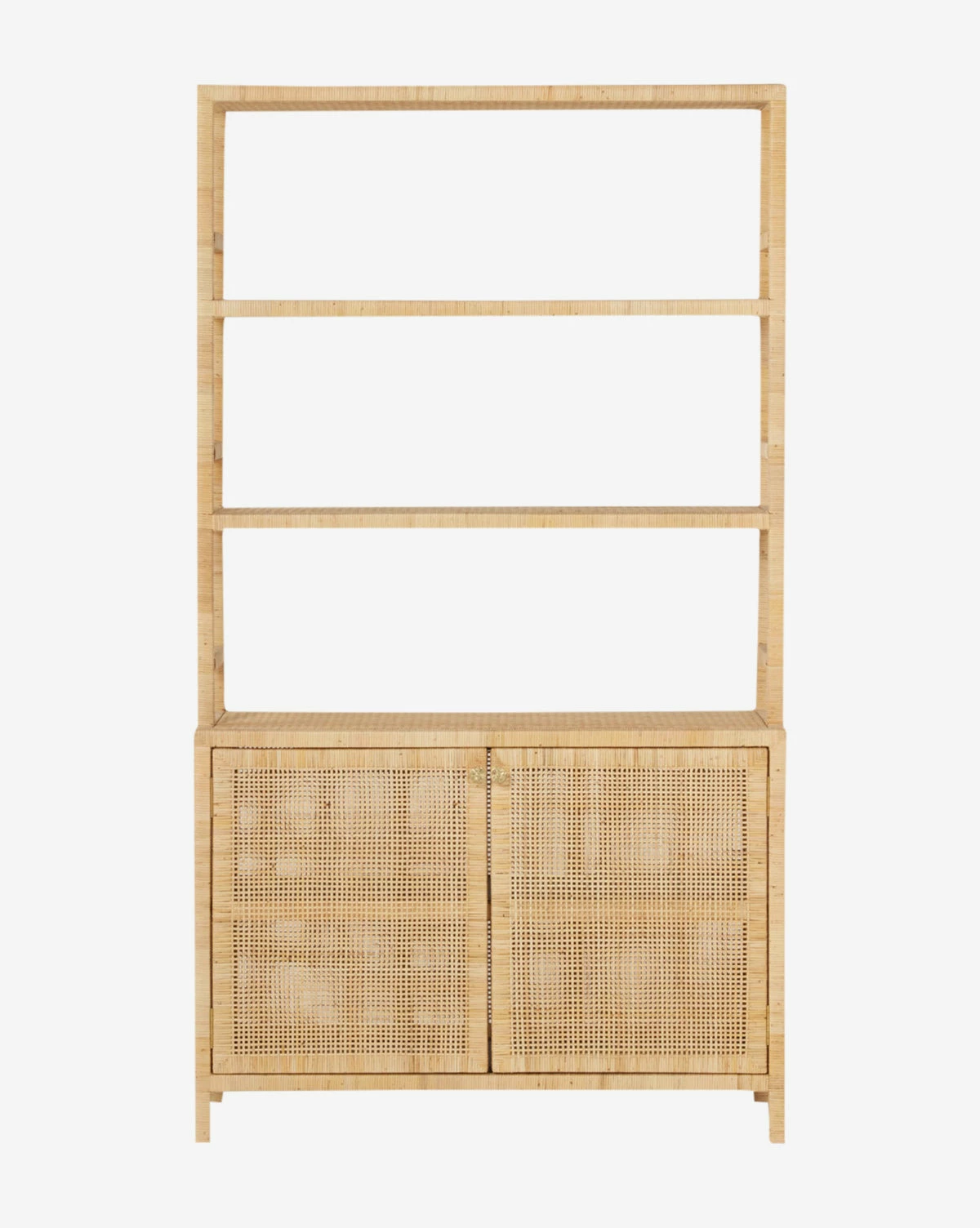The unique Alvarez Bookcase with Hutch is an exceptional display of organic materials, available in a variety of finishes. Its open shelving (with no backing) acts as a bookcase while its closed storage below adds functional versatility, all wrapped in tightly wound rattan. The natural materials used to craft this piece are treated to feel sleek and subdued, making this a graceful addition to a home office, living space, or dining room.