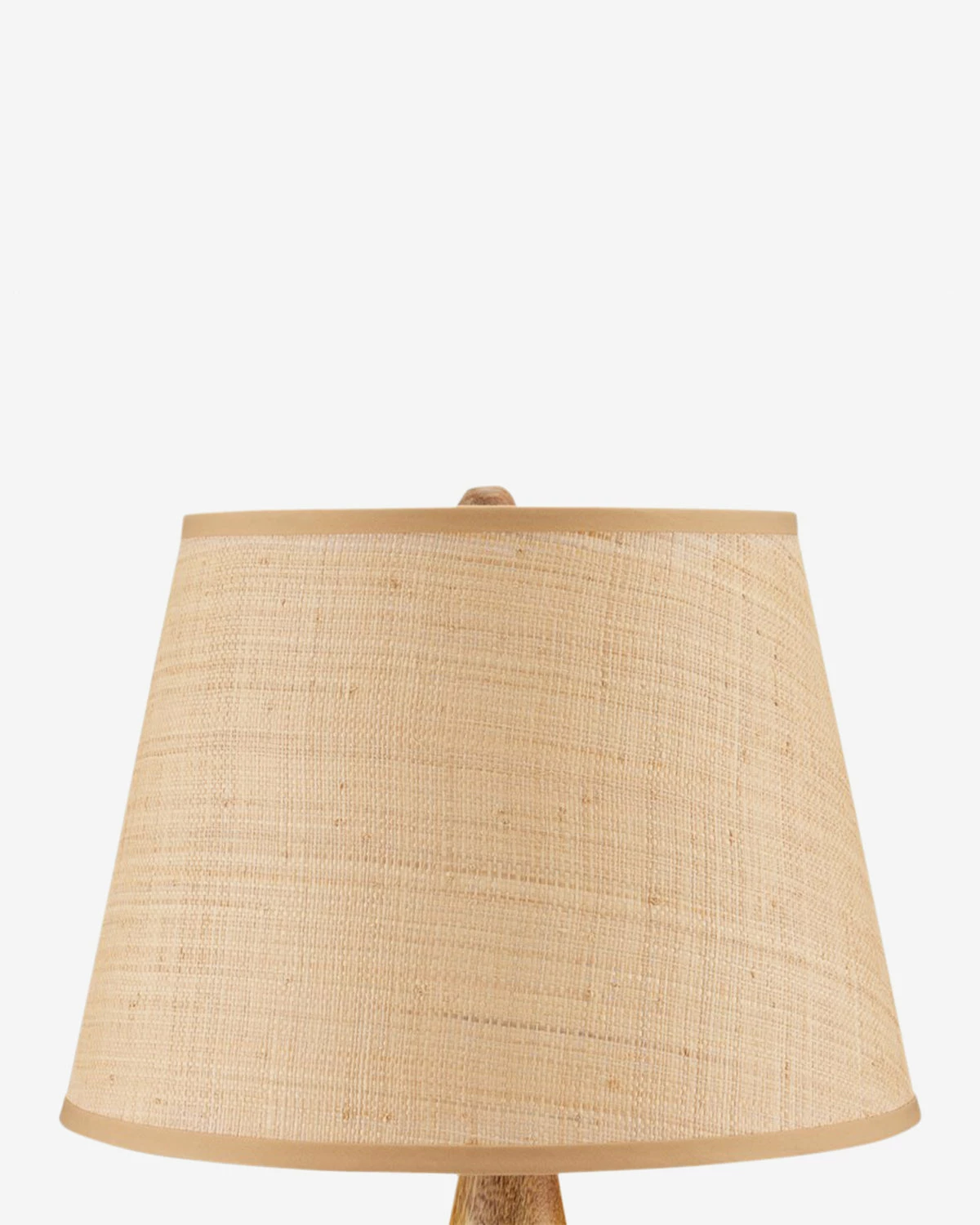 Designed with a telescoping column of solid wood and subtle plinth base, the Amalia Table Lamp is a designer piece that expertly mixes natural materials. With a band of hand-wrapped natural rattan around the base’s waist, the lamp is finished with a grasscloth shade. Its tones elegantly interact, creating an inviting warmth that is complete with brass hardware and a beautiful wood finial.