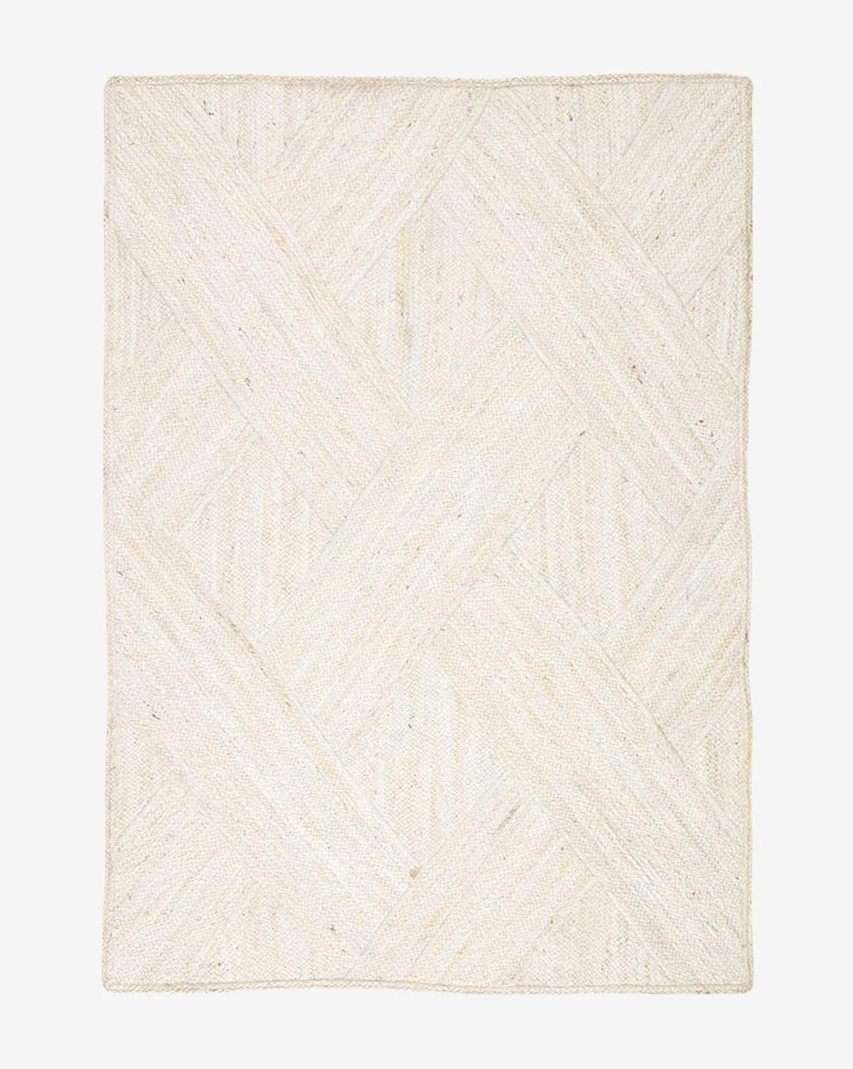Our Ankara Handwoven Jute Rug delivers organic allure with its neutral tones and unique interlocking stripe pattern. Handwoven from bleached jute fibers, this rug anchors your space with a natural feel while lending a sophisticated yet playful touch to your home.