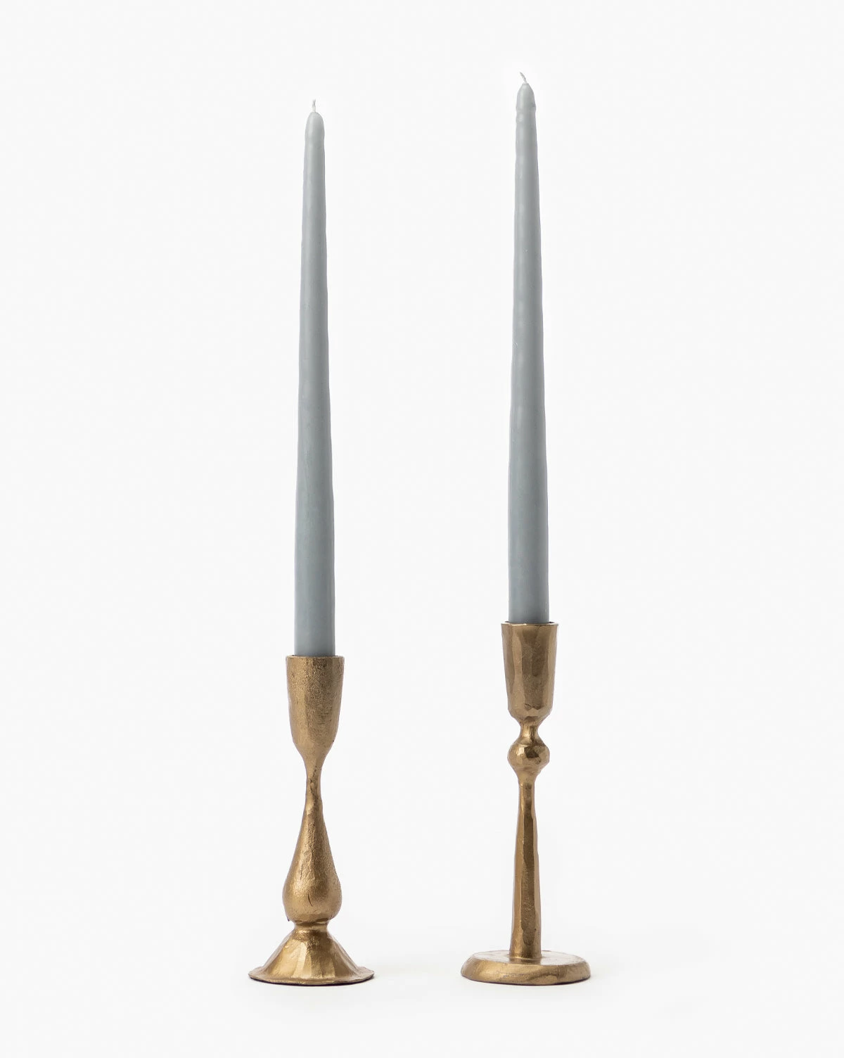 The rustic quality of this Antique Brass Taper Candle Holder gives character and personality to your mantel or console vignette. Its brass finish and slender form highlights the forged nature of this piece, bringing an added element of visual interest.