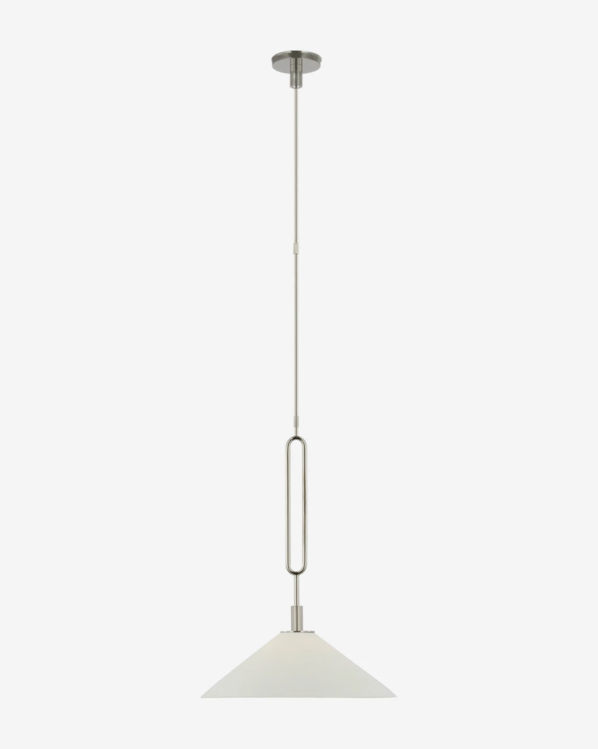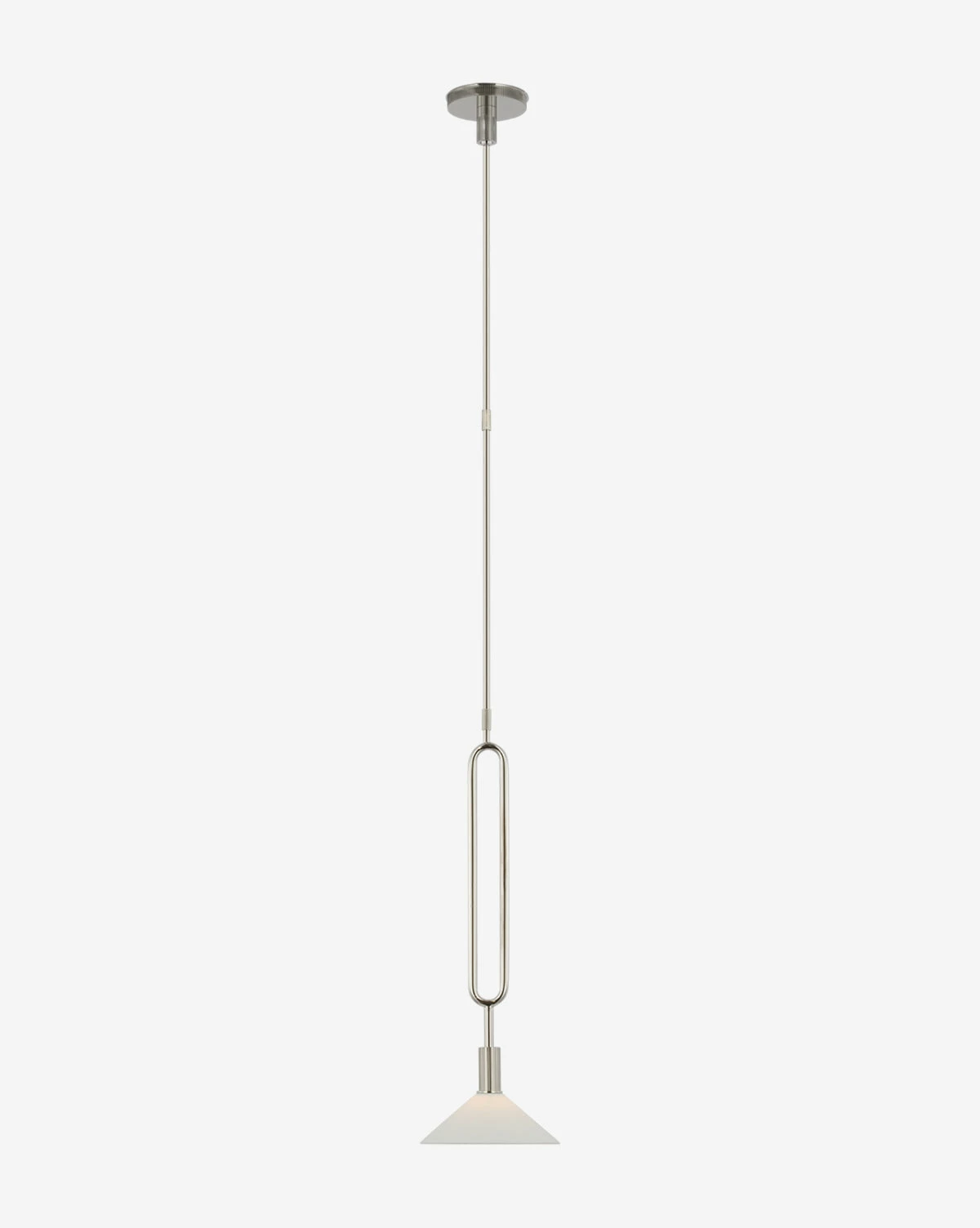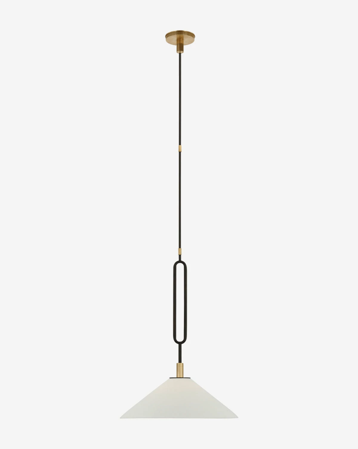 The Argo Pendant strikes a balance between its sleek structure and its stunning tapered shade. The matte porcelain shade brings contrast to the dark metal shapely rod, making a unique statement in lighting designs from the kitchen to the living room.