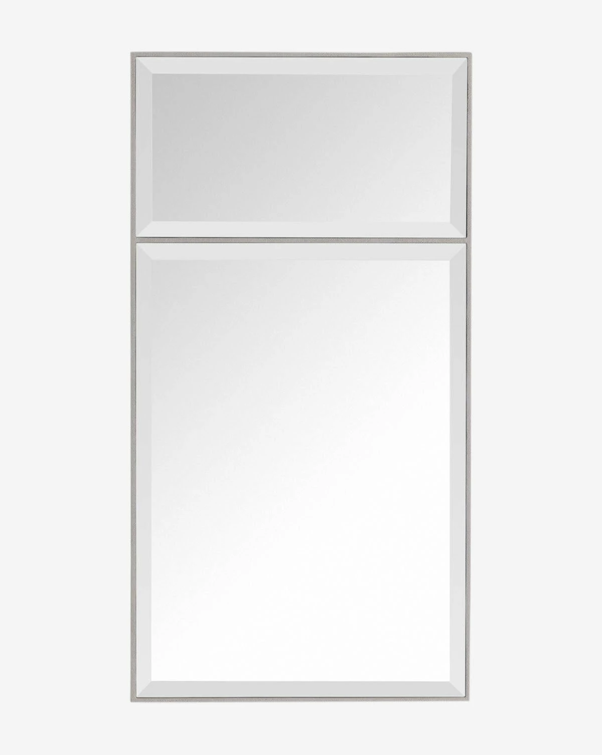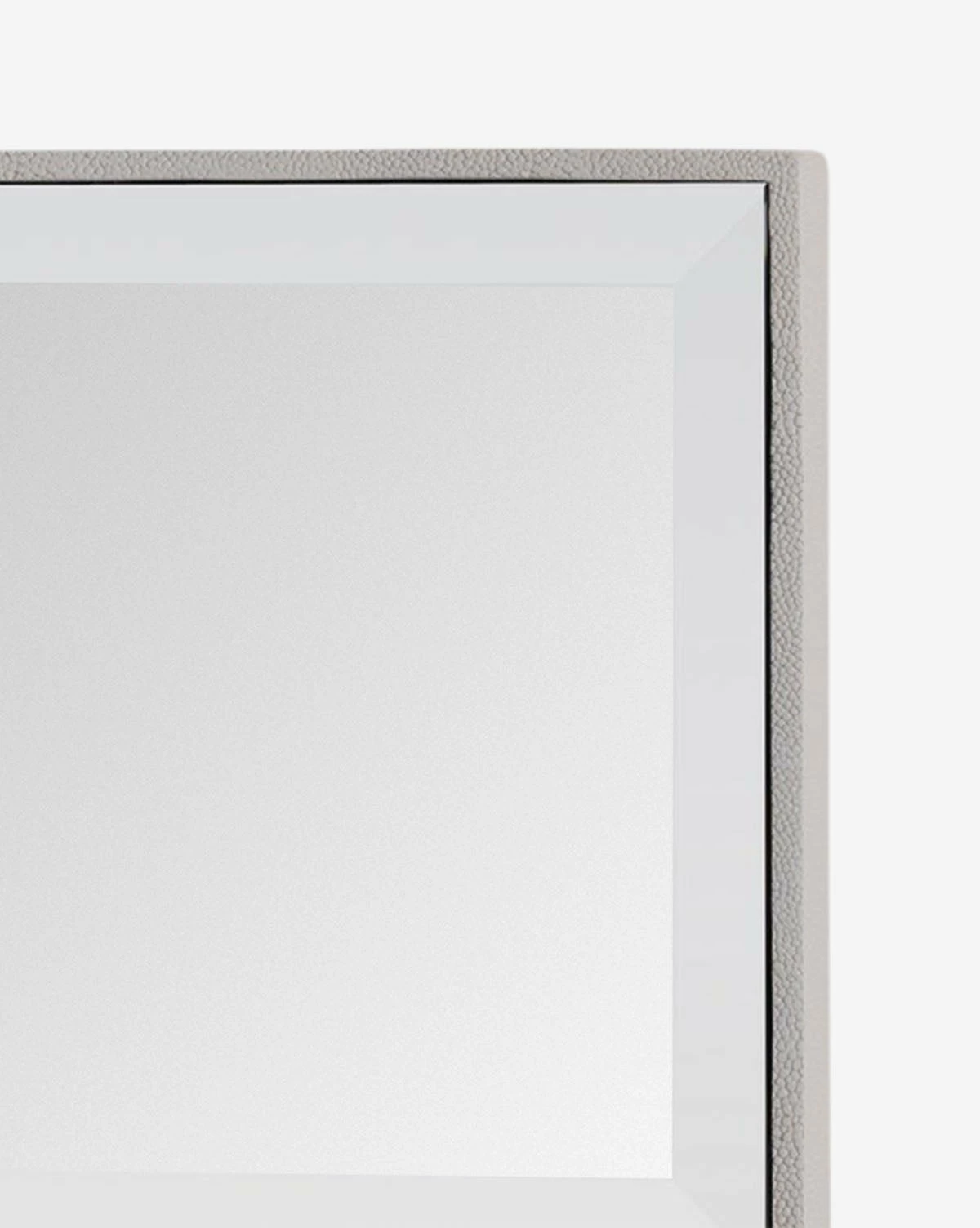 With two beveled mirror panels, the Ariel Rectangle Mirror brings sophistication to wall decor. Featuring a narrow seam delineating each mirror panel and a faux shagreen finish around the frame, its style is contemporary and sleek. Though simple, the details that characterize this two-paneled mirror are a testament to the beauty of the little things.