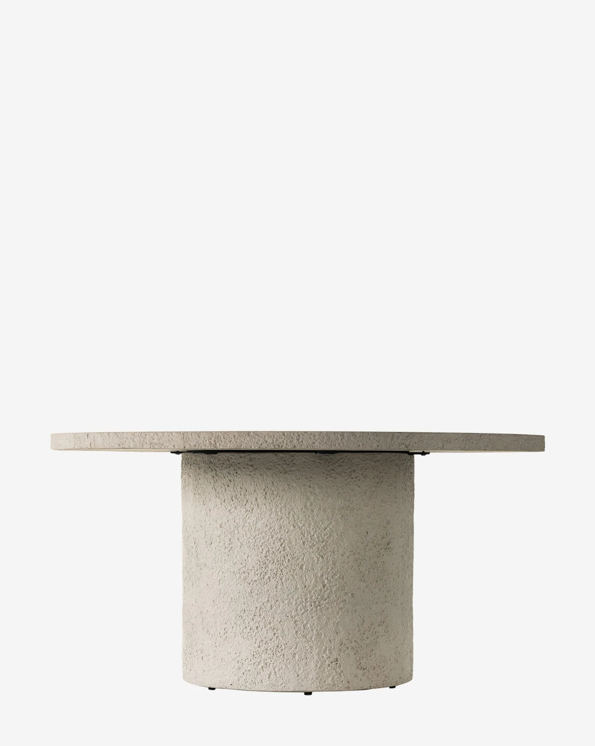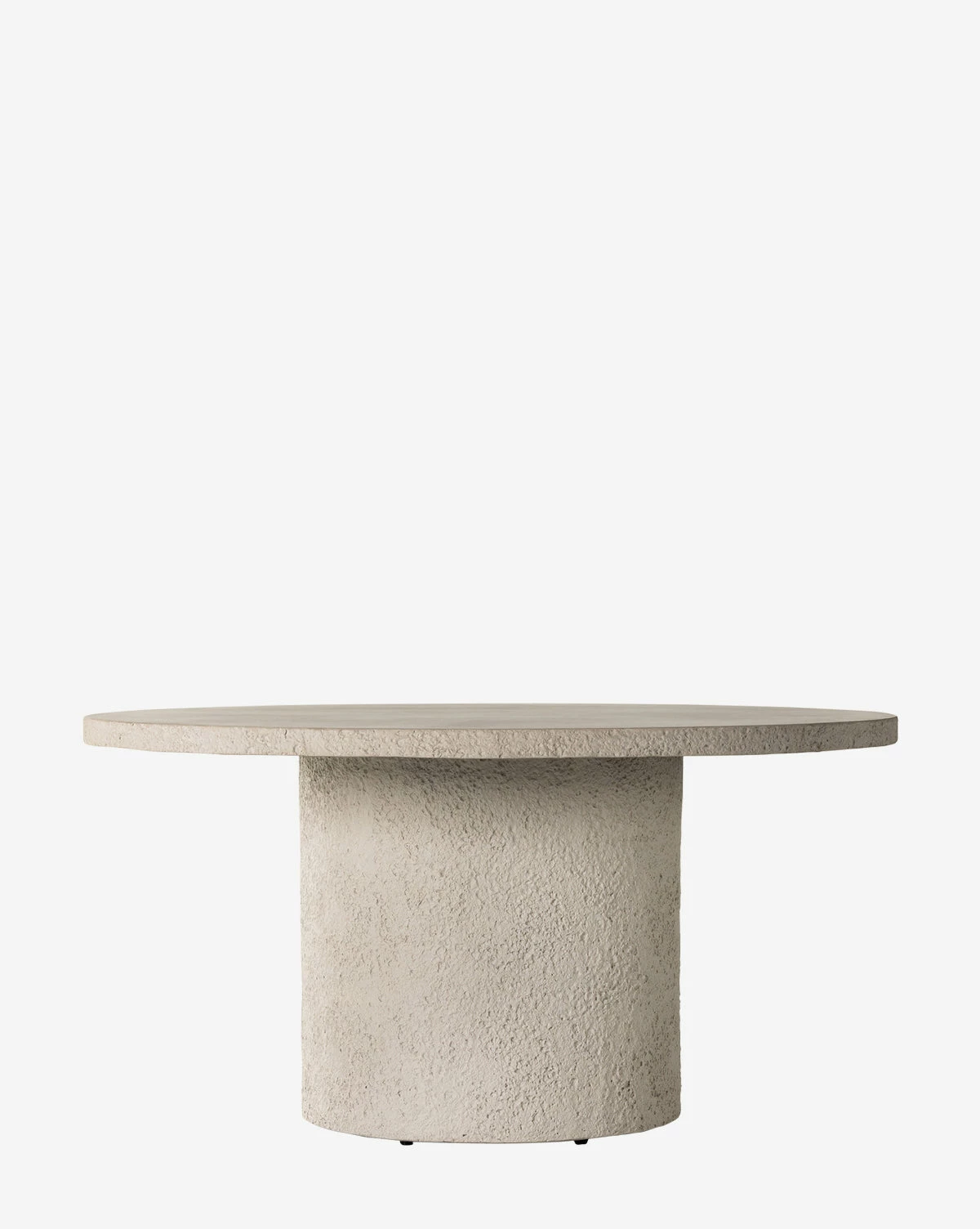 A cylindrical base gives the Atalanta Outdoor Dining Table a contemporary, sculptural look that pairs well with its rounded top. The simple yet modern design is constructed from neutral concrete, making it easy to match your current outdoor styling.