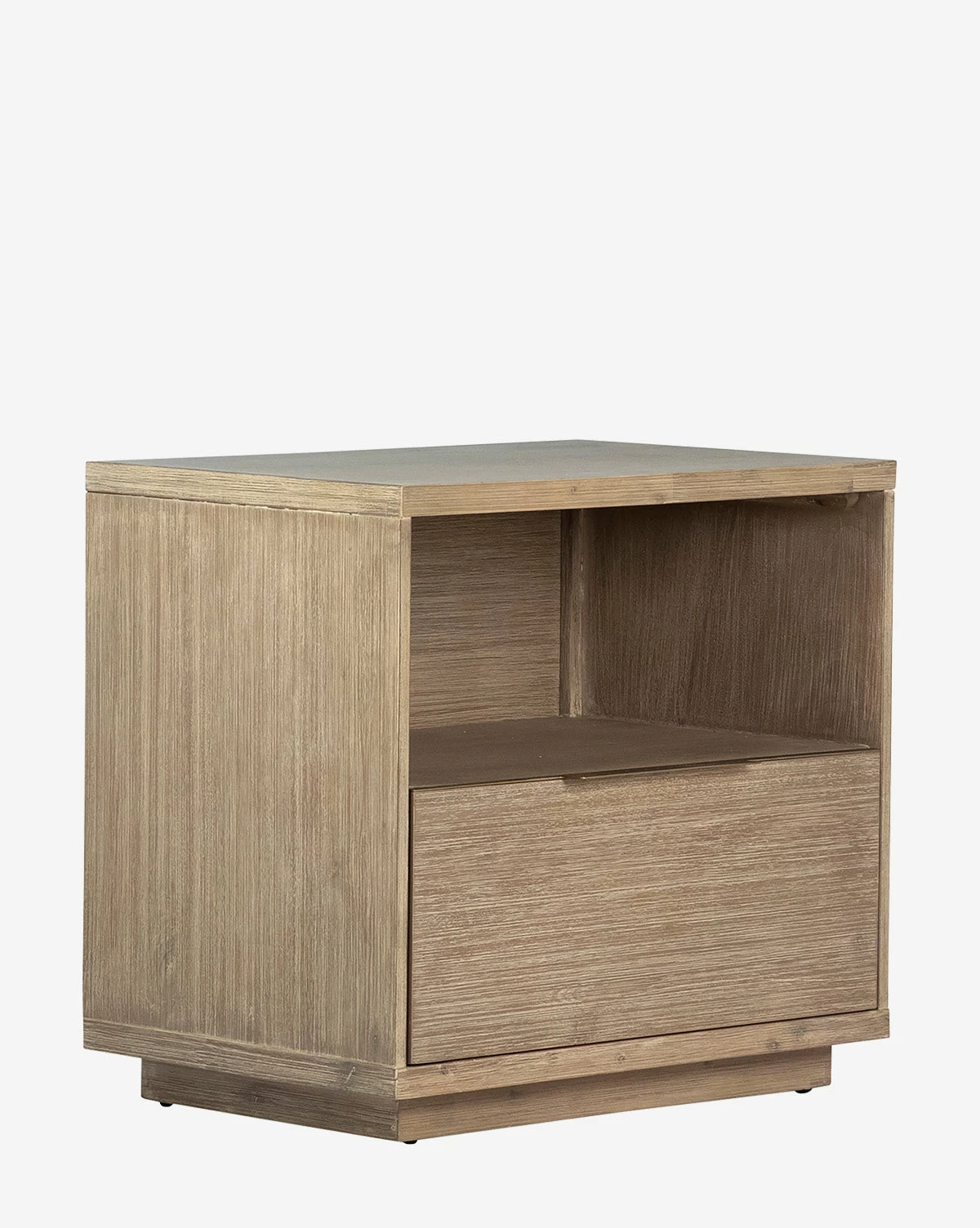 Crafted from acacia wood in a light wash finish, the Audrina Nightstand adds plenty of storage with its minimalist design. Softening your space with an open shelf on top of the subtle drawer, this nightstand complements your bedroom decor with its simple, contemporary form.