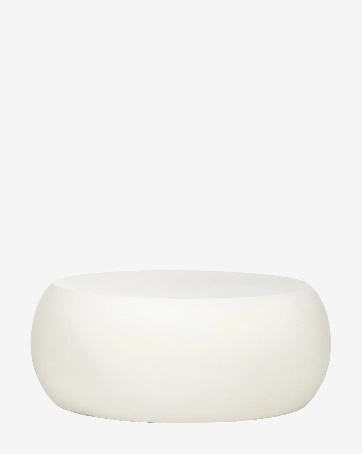 In a neutral, ivory colorway, the Aylah Coffee Table is shapely and bright. Made of solid concrete finished with a light clay, the modern minimalist feel creates a focal point and foundation for styling in a living room or office.