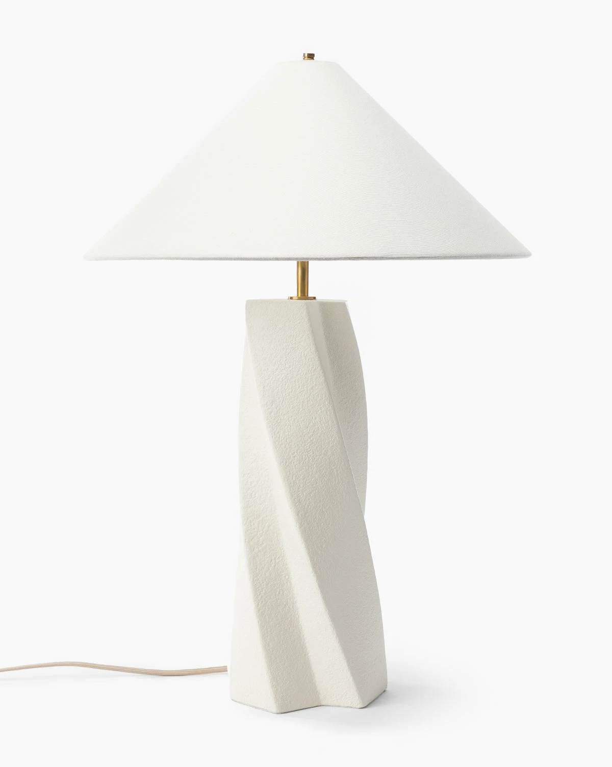 A shapely base brings a sculptural element to your space with the Bettencourt Table Lamp. Crafted from white resin with brass accents, the lamp features a complementary linen shade.