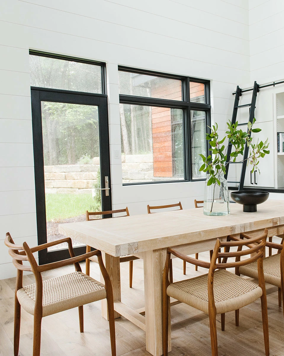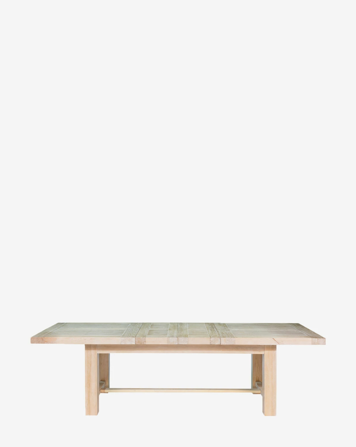 The Bettina Dining Table is crafted from substantial pieces of natural oak. Together with its straight lines, light finish, and extensions, it becomes a contemporary gathering place in your kitchen or dining room.