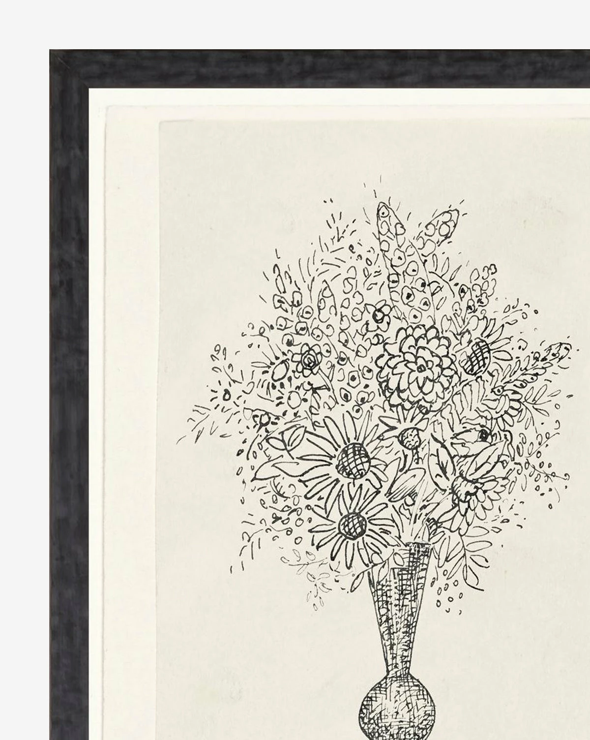 A historically inspired sketch and frame, the Black & White Bouquet adds character to your rooms. Fine line details and an imaginative collection of flowers bring to life a whimsical garden through this still-life drawing.Â