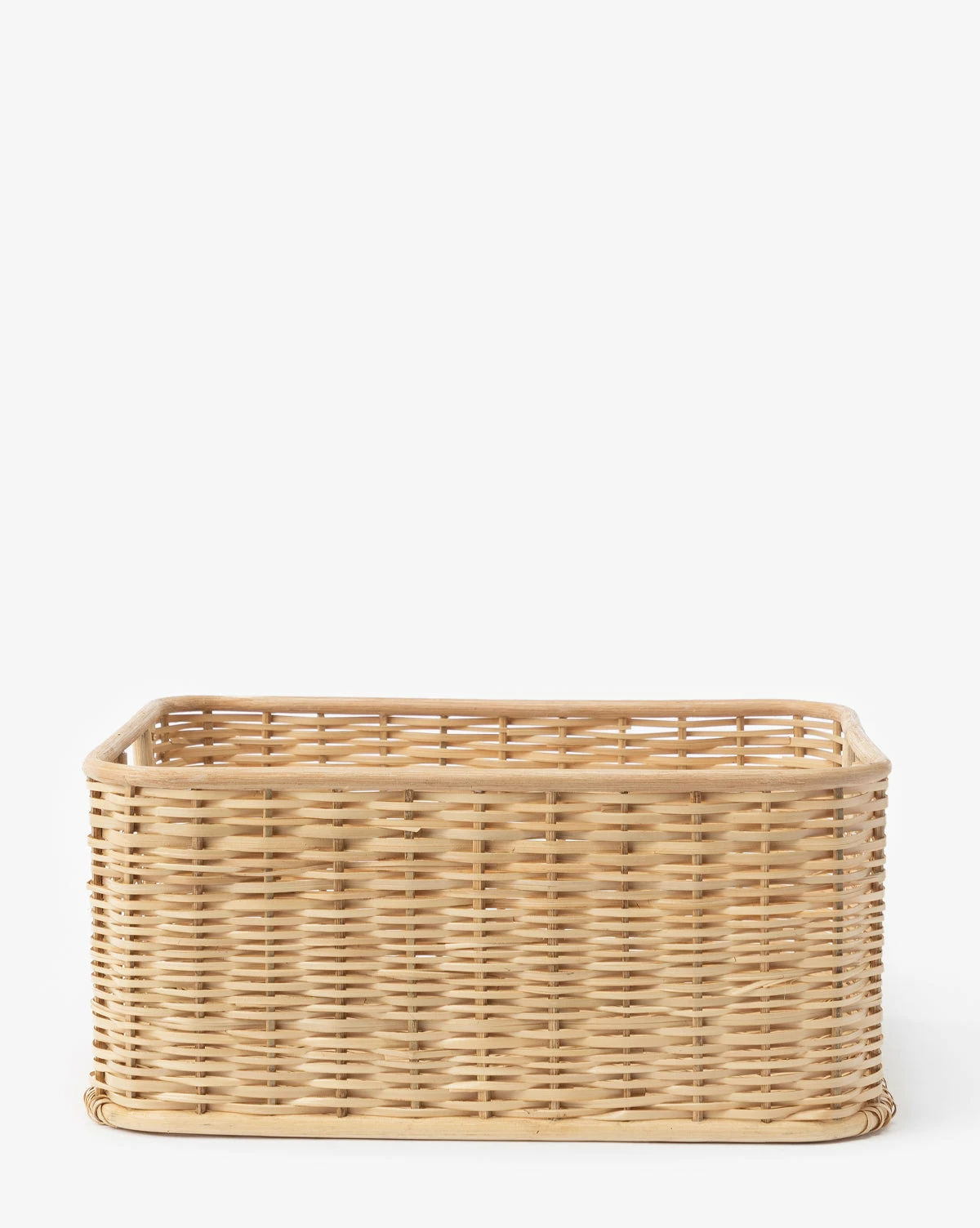 With a natural look and feel, the Palm & Rattan Basket brings extra storage to your space with its handled, rectangular form. Handmade from palm and rattan, this basket adds the perfect amount of both dimension and texture with its woven form.