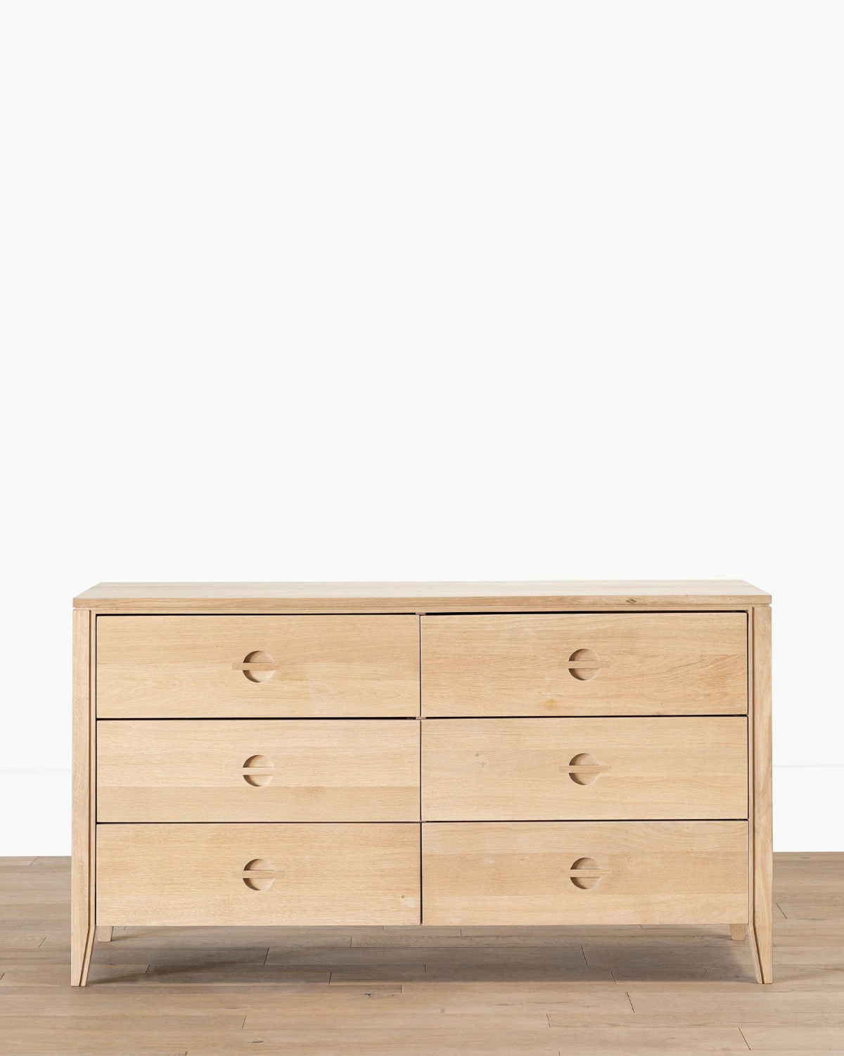 We designed the Bodin Dresser with natural finishes and modern details for a unique take on the straightforward bedroom dresser. Made entirely from oak, every aspect of the dresser highlights its materials and craftsmanship. Its six drawers are finished with inset handles formed by two half circles, which showcase the dresser’s simple contemporary design.
