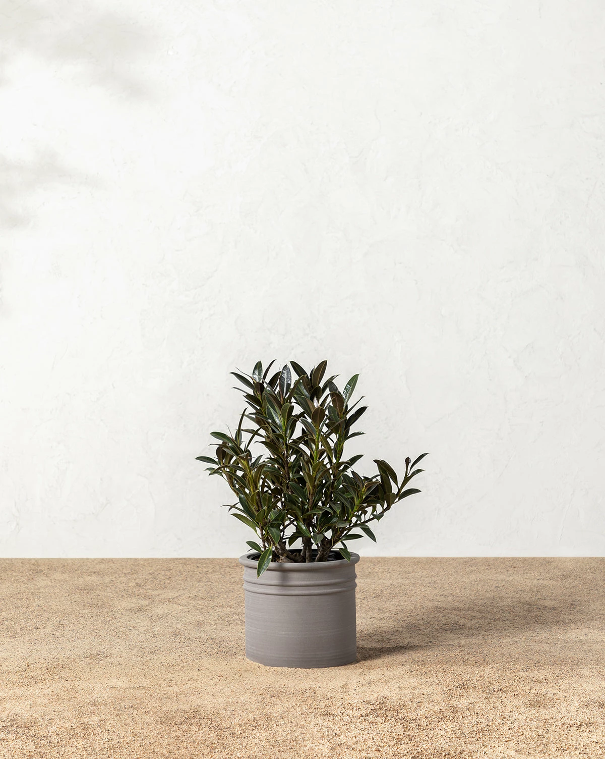 With classic details and a cylindrical design, the Bolton Ceramic Planter is an updated take on the traditional planter. Hand made from ceramic with hand-applied gray glaze, this planter has a rustic yet contemporary feel.