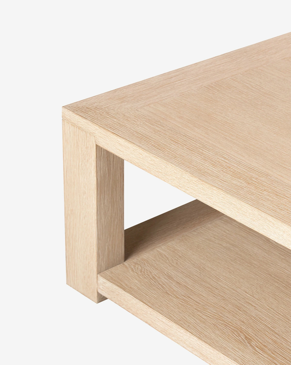 In a bleached oak finish, the Boone Coffee Table boasts a creative, contemporary design. Its architectural form adds subtle shape and dimension to your space. The natural details of the coffee table make for the perfect mix of organic and modern.