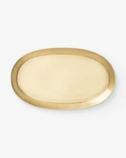 An elegant and bold accessory, the Brass Oval Tray adds vintage-inspired detail to your vignettes with its antique brass finish. The shallow oval tray with angled lifted edges brings refined practicality to coffee tables or consoles.