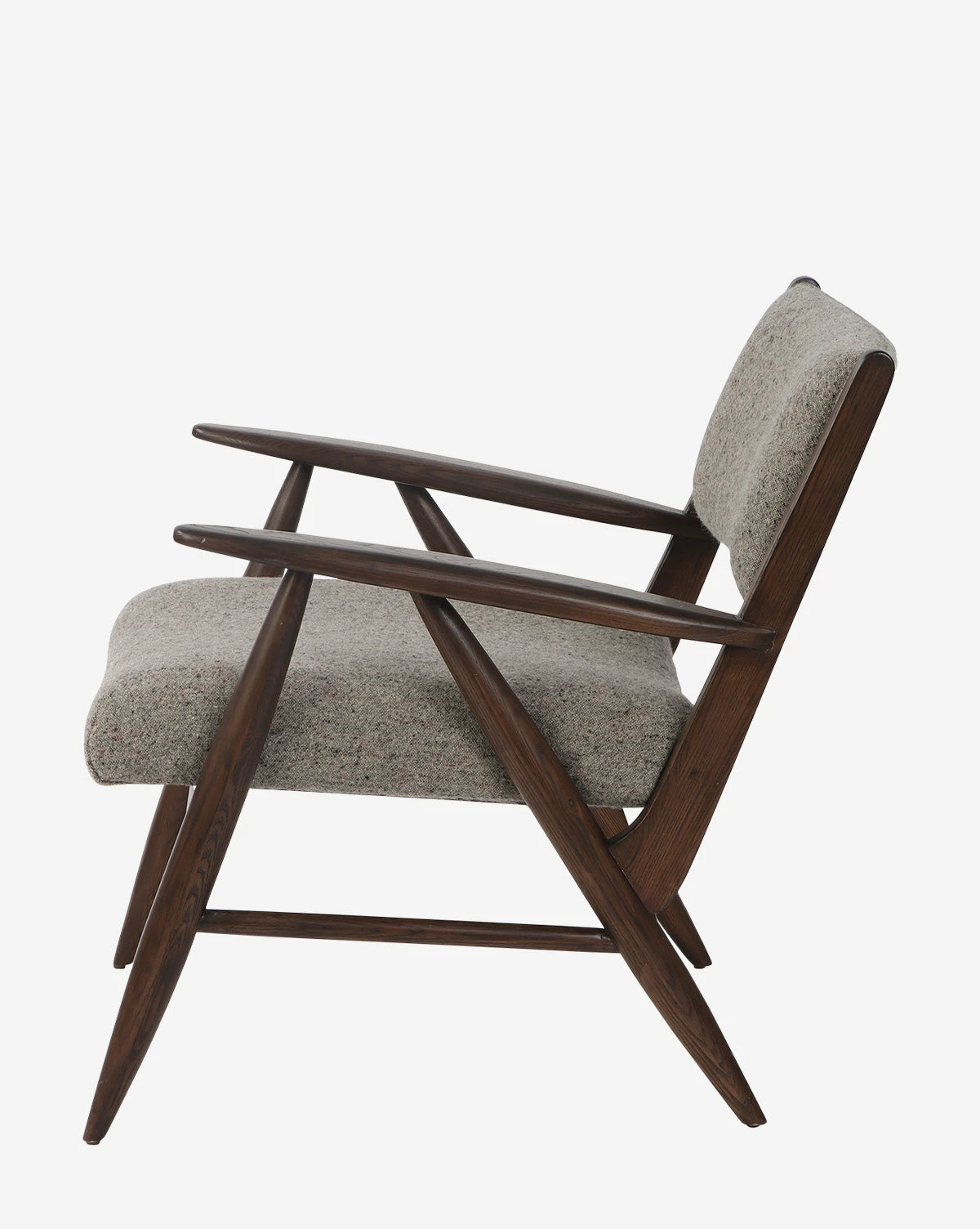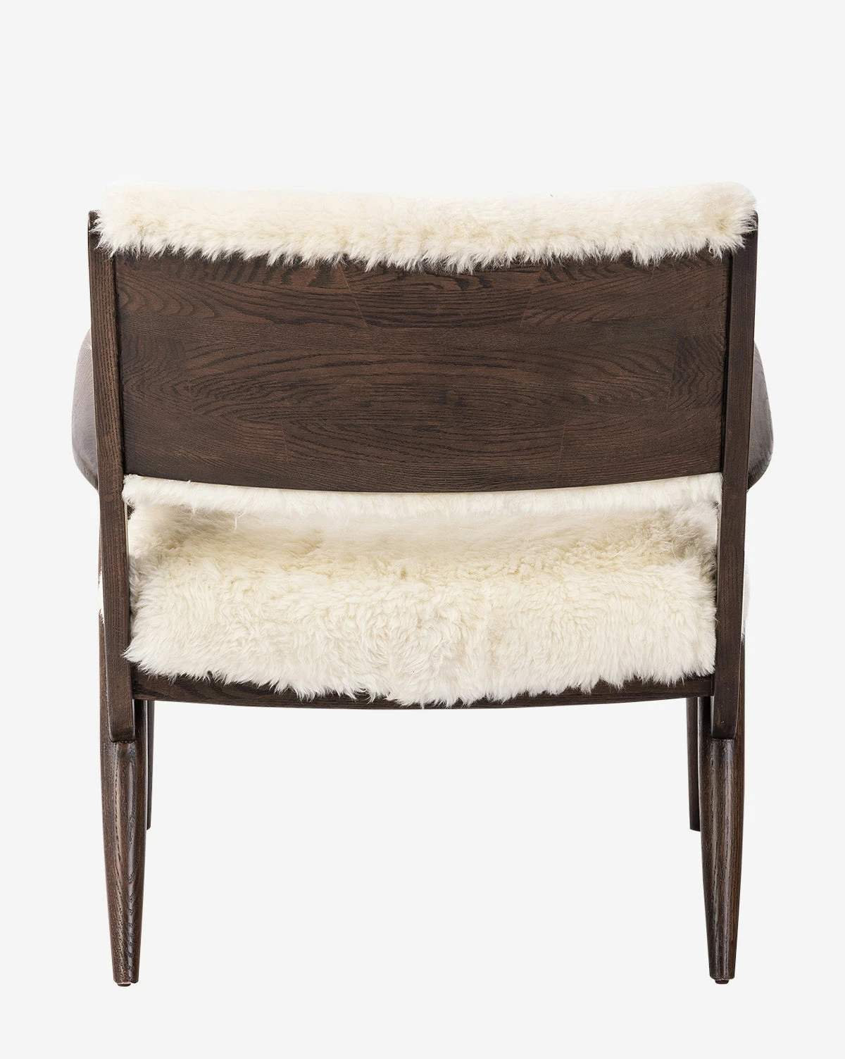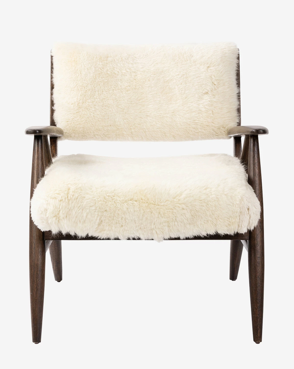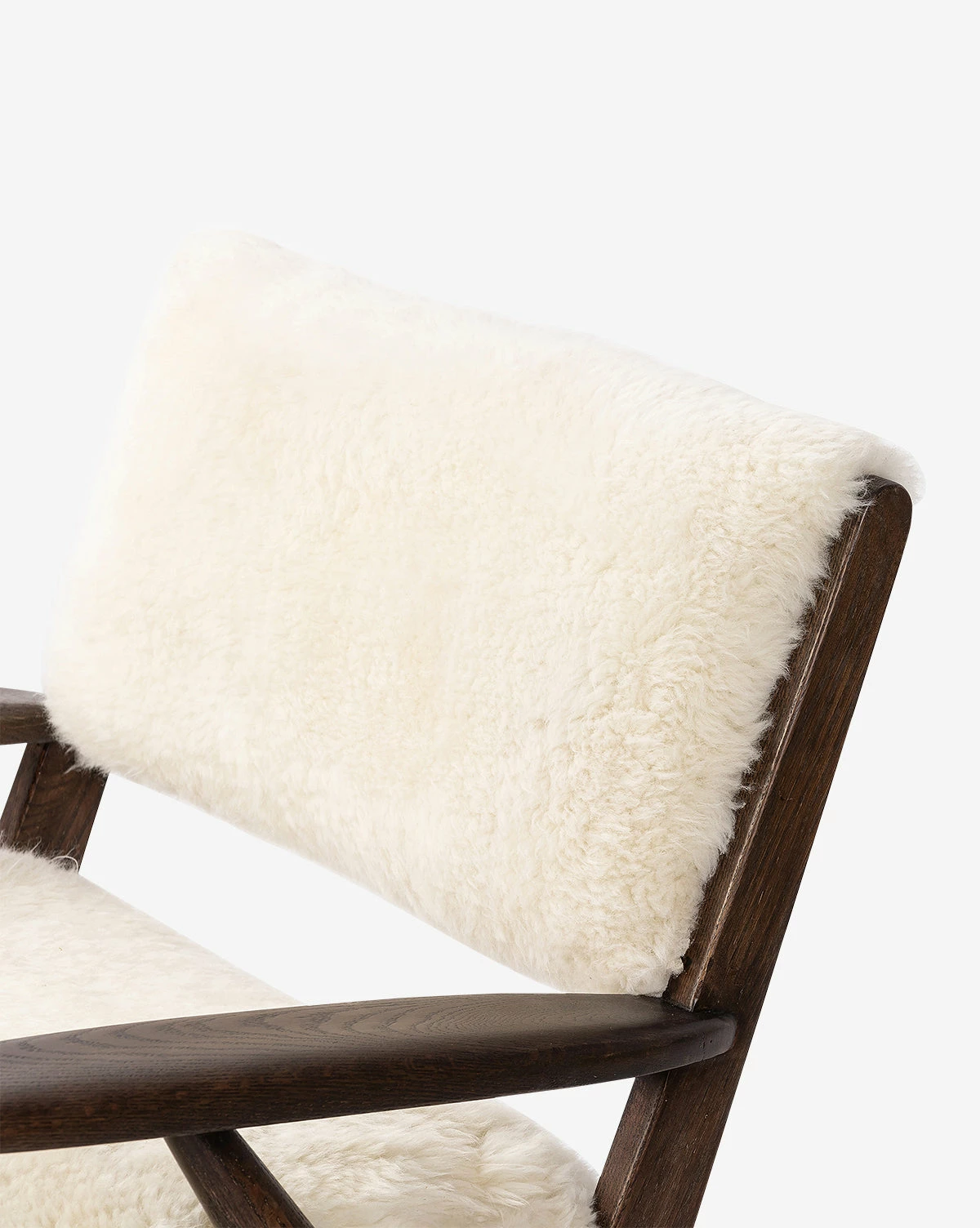 With full cushions and a dark wood frame, the Breckin Lounge Chair brings a comforting transitional design to your space. The lounge chair is available in either a plush cream shearling of 100% sheepskin or an ash Belgian linen.