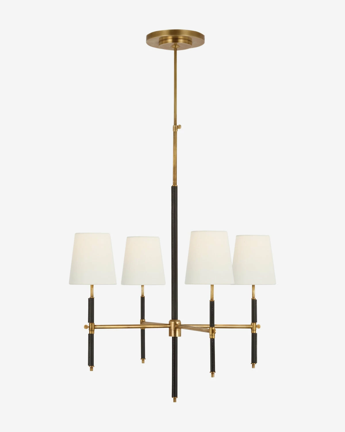 Simple and streamlined in design, the Bryant Wrapped Chandelier is a classic addition to any space. The elegant structure and wrapped leather detail of this fixture blend seamlessly with existing decor wherever it is styled.
