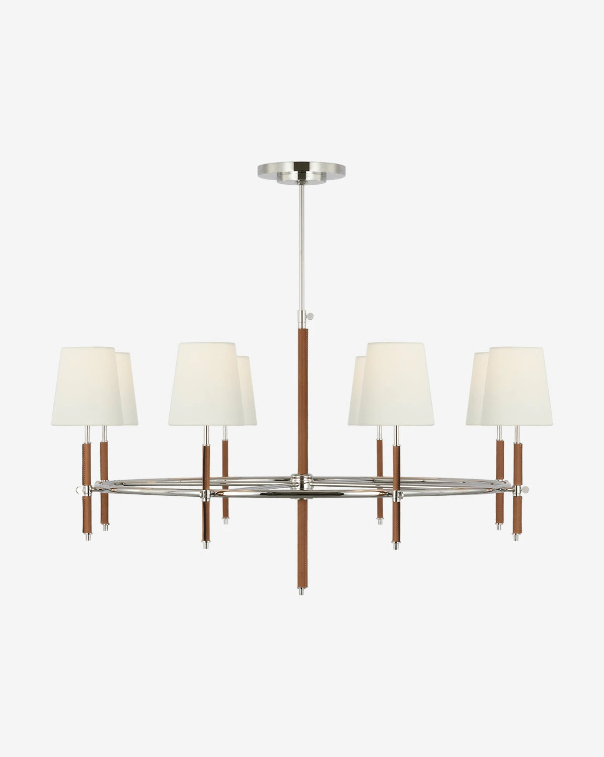 Simple and streamlined in design, the Bryant Wrapped Ring Chandelier is a classic addition to any space. The elegant structure and wrapped leather detail of this fixture blend seamlessly with existing decor wherever it is styled.