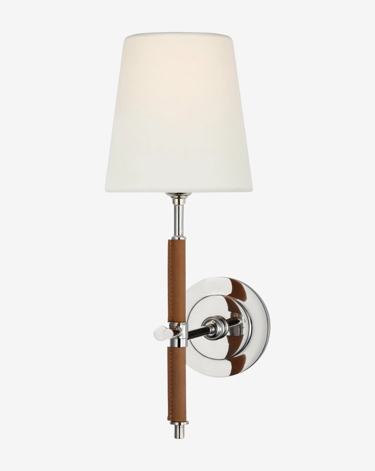 Simple and streamlined in design, the Bryant Wrapped Sconce is a classic addition to any space. The elegant structure and wrapped leather detail of this fixture blend seamlessly with existing decor wherever it is styled.
