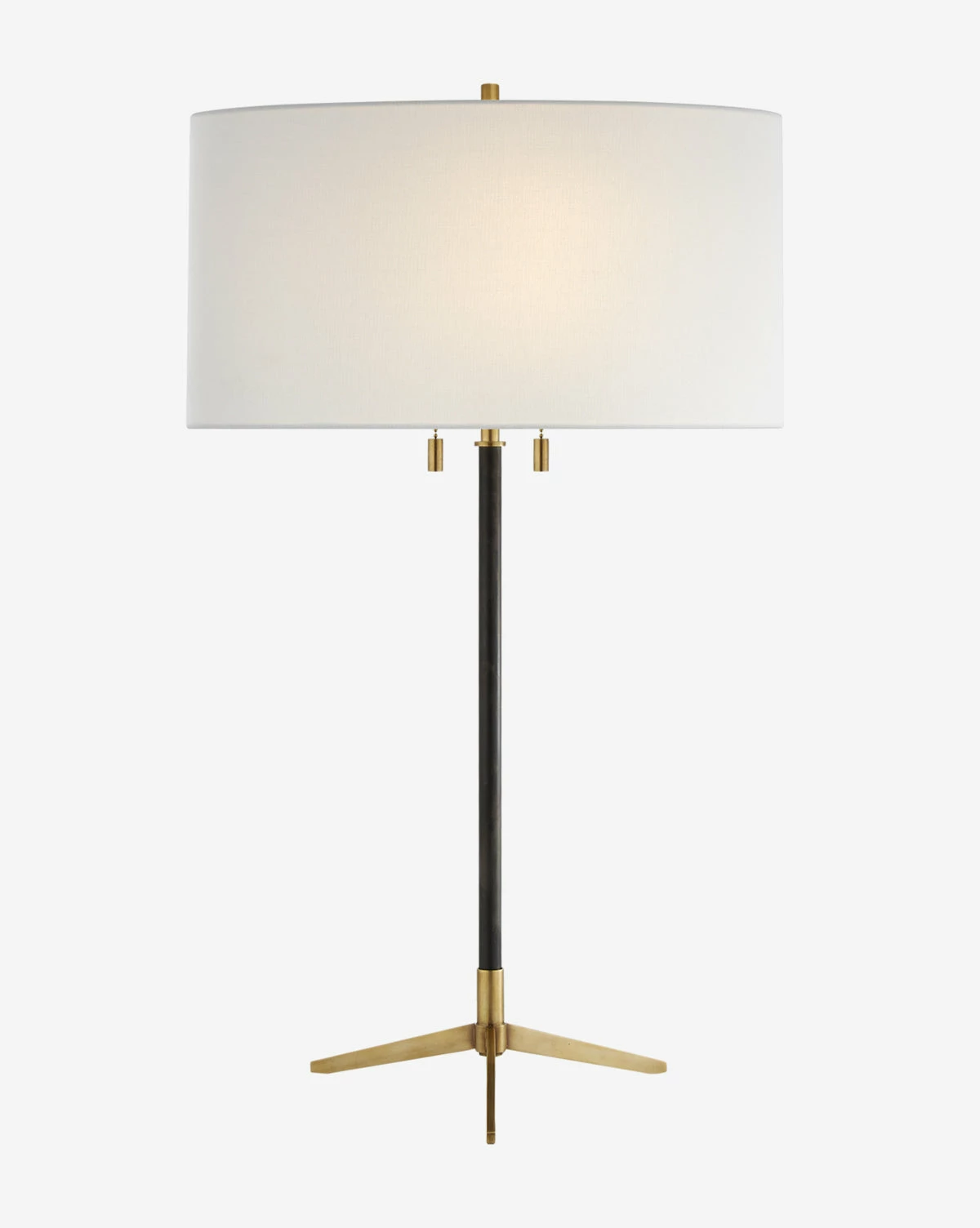 With a straightforward design, the details of the Caron Floor Lamp are what make it special. A sleek metal body with a tripod base is available in three elegant finishes to complement its linen drum shade with a closed top.