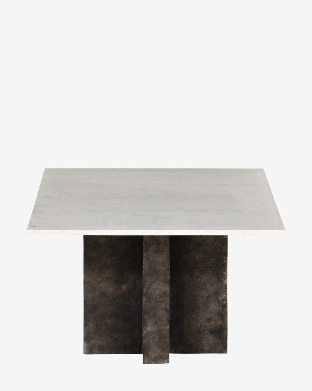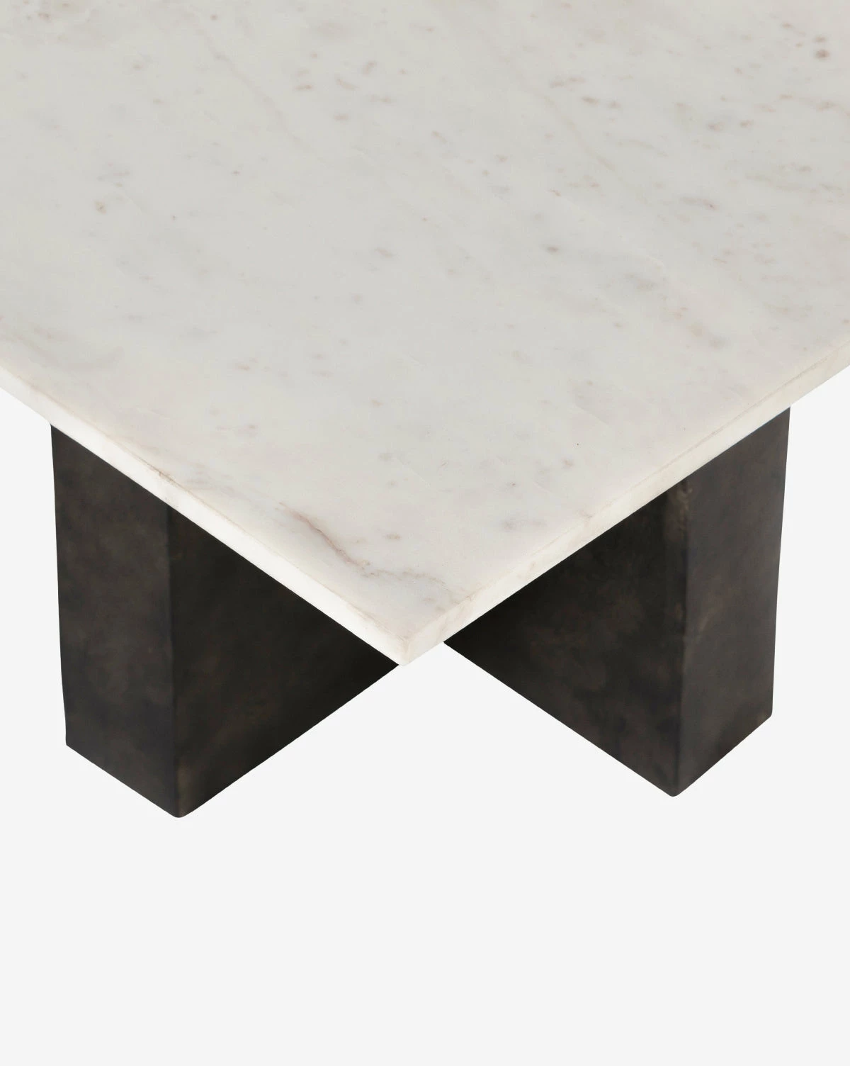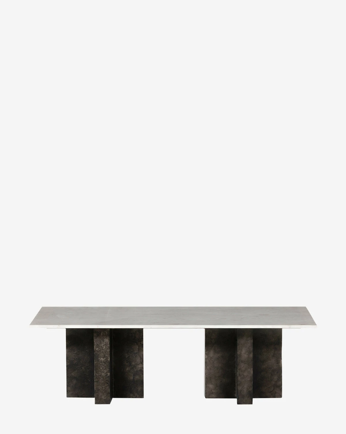 The Carrick Coffee Table uses clean lines and two geometric bases to express its sculptural style. Crafted with aluminum with a black finish and a solid marble tabletop, the bold materials featuring natural details bring an elevated and contemporary feel to your space.