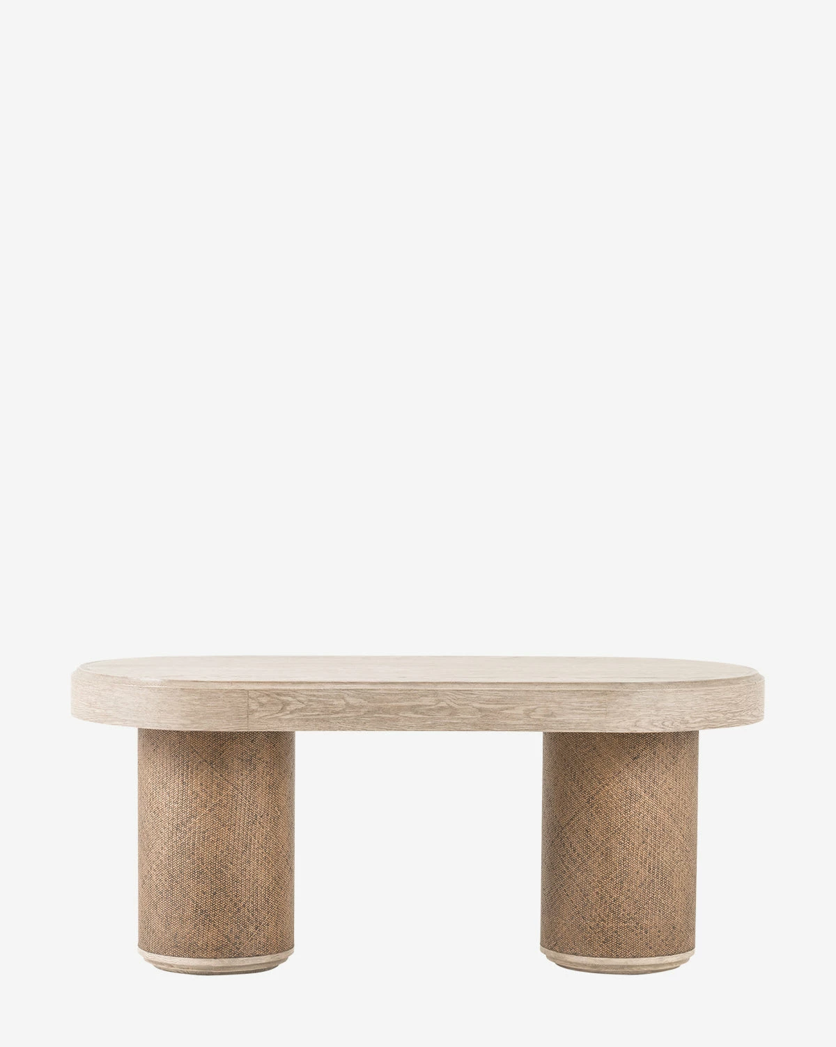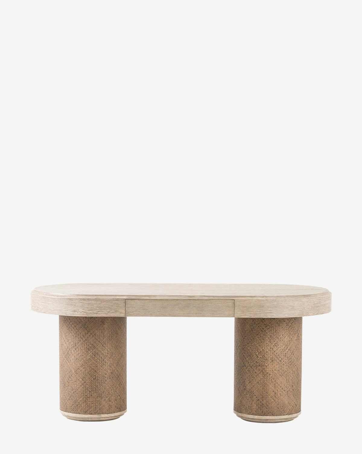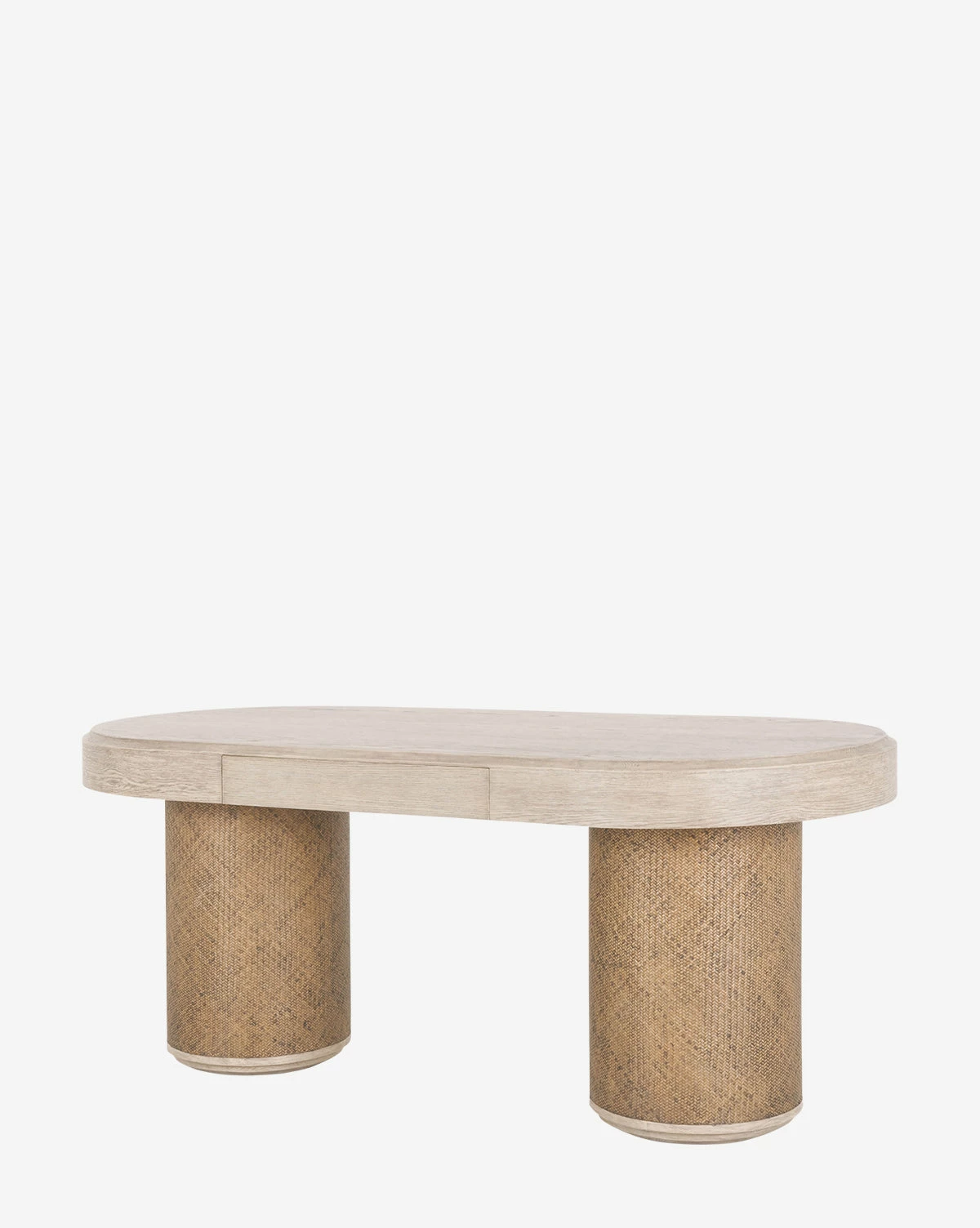 With soft curves, the Cecily Desk is crafted from solid pine and an oak veneer, featuring rattan around the wide cylindrical legs. Pairing organic texture and materials with a sleek, contemporary design, the desk brings a truly unique feel to your decor.