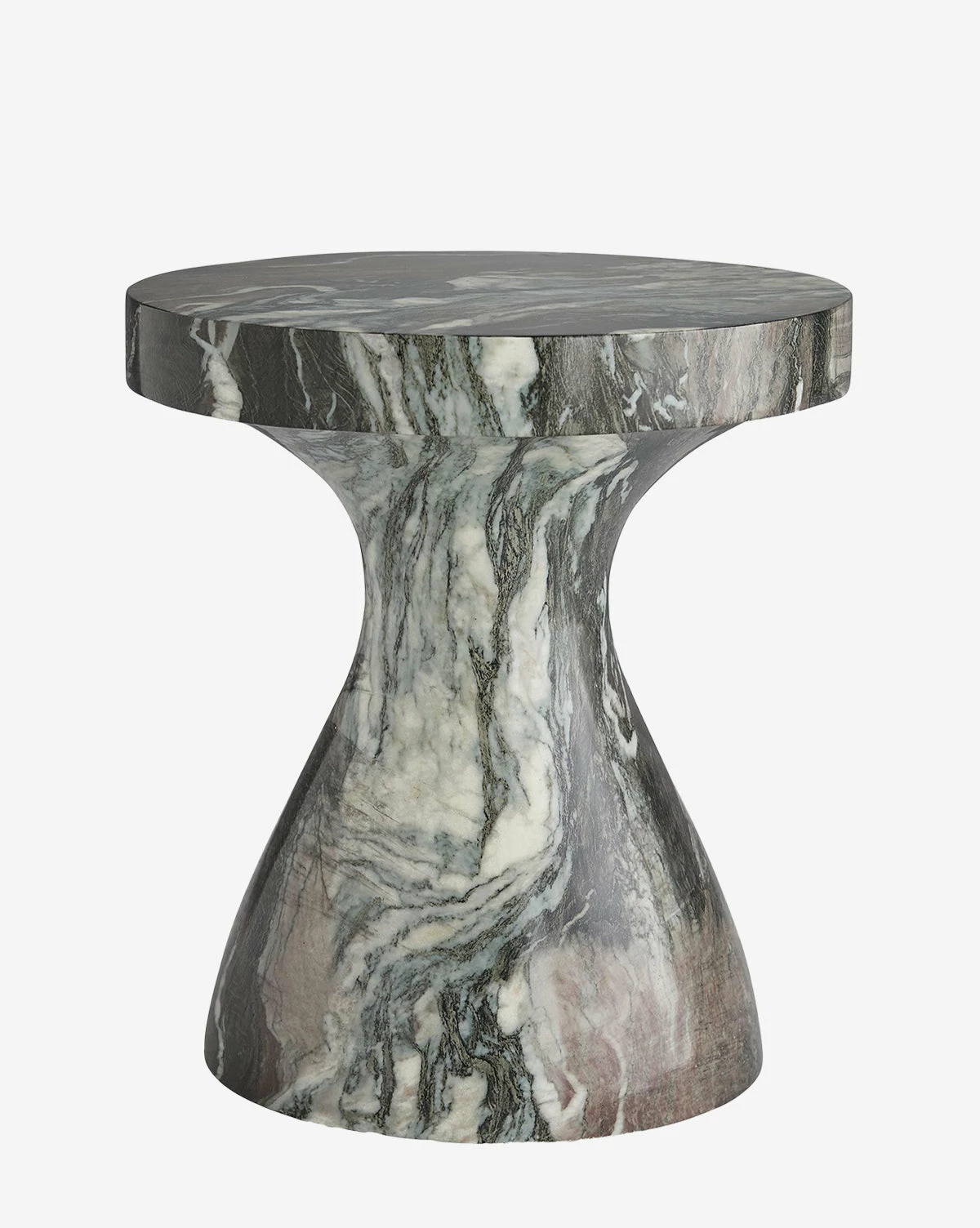 Minimal in stature, the Chance Accent Table is visually weighty and full of character. Made entirely of lightweight concrete, its marble-like facade is created individually with hydrographics, allowing each accent table to be slightly unique.