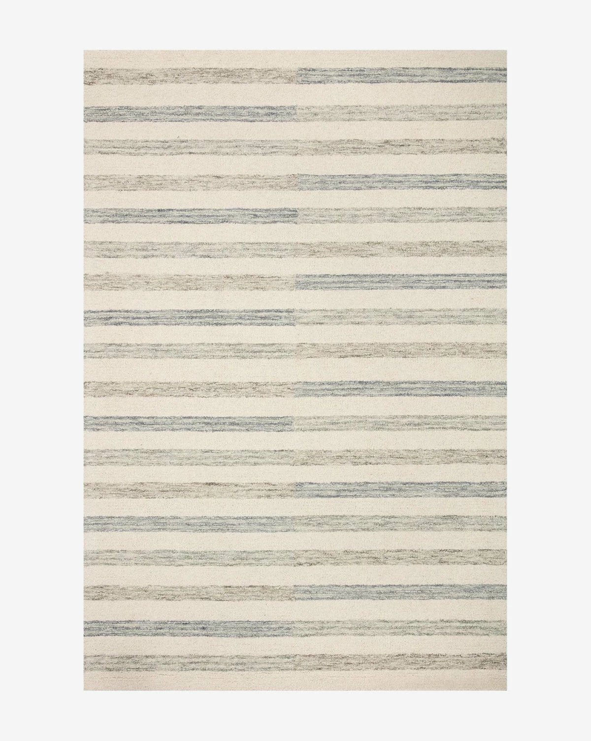 Hand-tufted with a calming palette of ivory and slate, the Stockton Hand-Tufted Wool Rug is subtle and refined. Crafted from 100% wool, the rug serves as an anchor to your space while remaining durable for years to come. Its striped motif adds interest to your home while complementing existing decor. Â