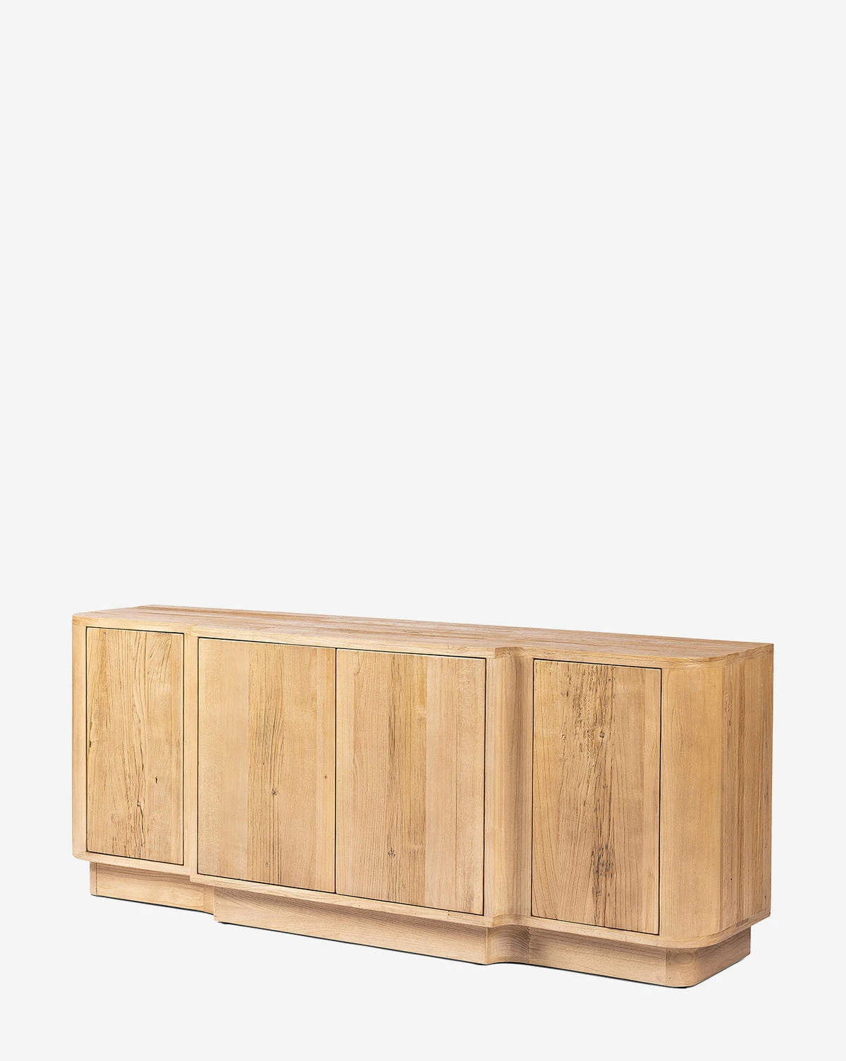 Crafted from reclaimed elm wood, the Claxton Sideboard is a modern sideboard that makes a subtle statement with its shapely design. With four doors and a wide top surface that reveal the natural wood grain, the intentional details of this sideboard bring sophistication to your space.