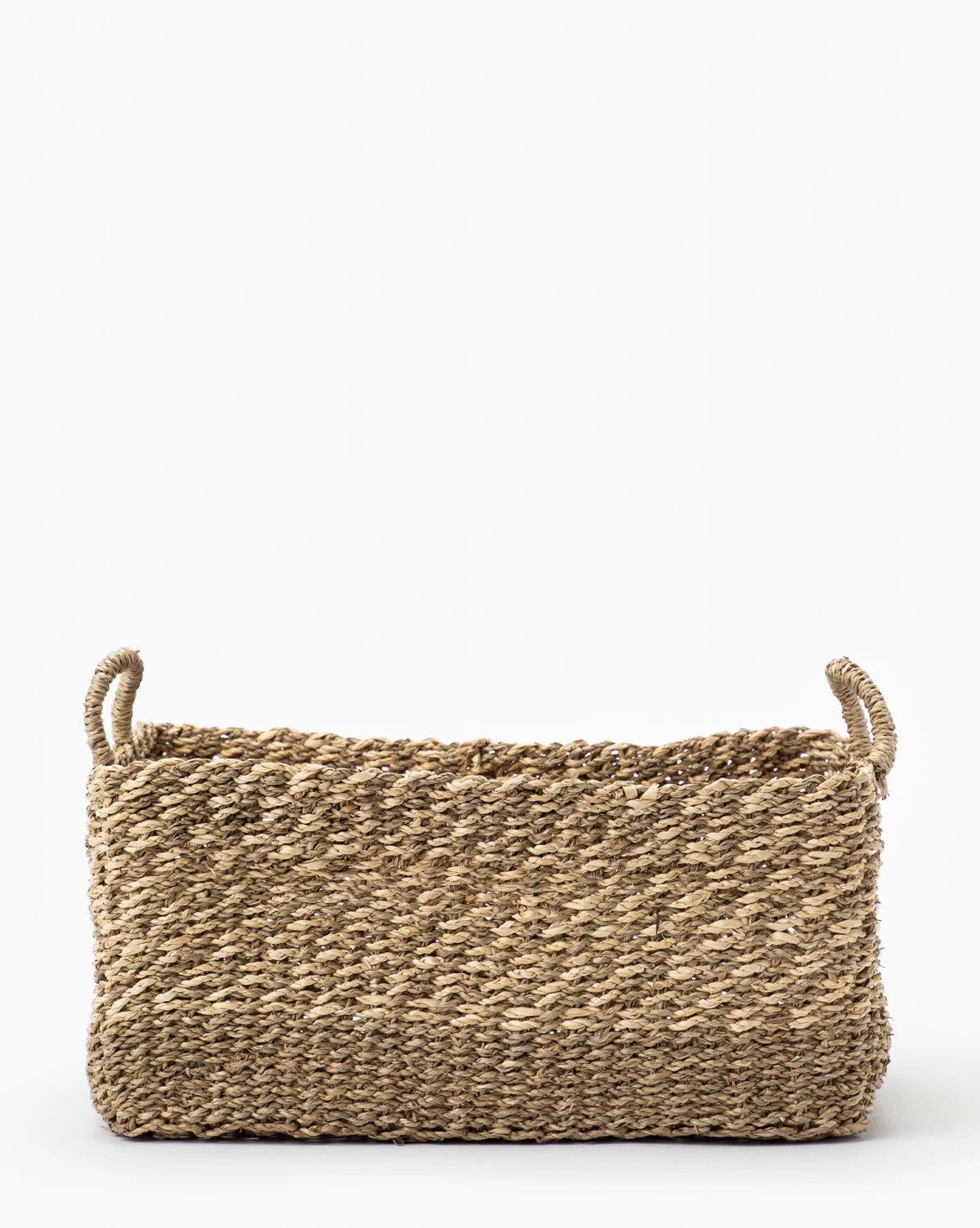 With a natural look and feel, the Cordova Basket brings extra storage to your space with its handled, rectangular form. Styled in pairs under your console or in your built-ins, this basket adds the perfect amount of both dimension and texture with its woven grass form.