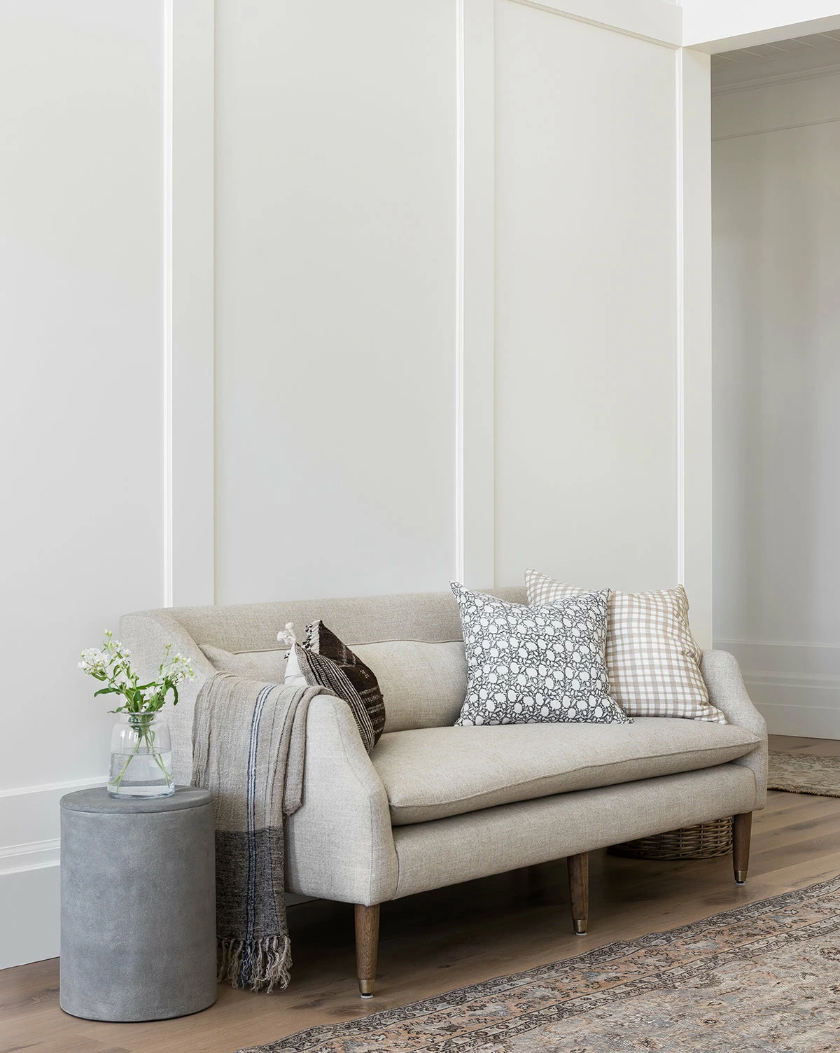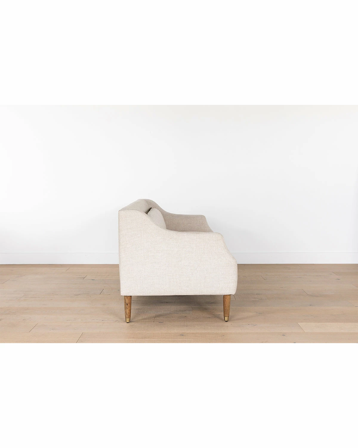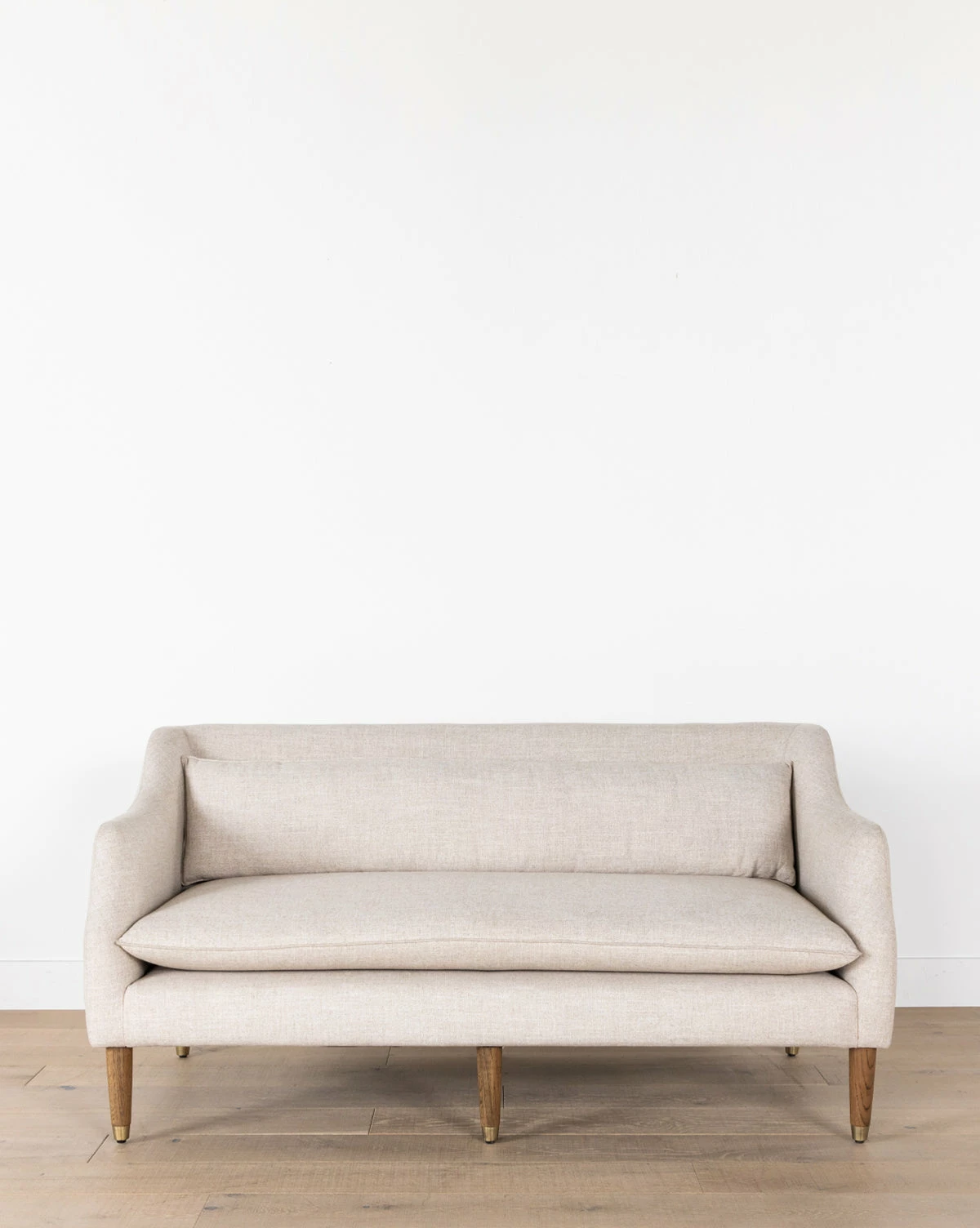 Formal meets modern with the streamlined shape of our Daxton Settee. Crafted with oak legs fitted with brass caps, and a large removable lumbar pillow, this piece instantly elevates any room it’s placed in. Styled in a large entry or a more formal sitting room, this cozy settee adds the perfect extra layer to your space.