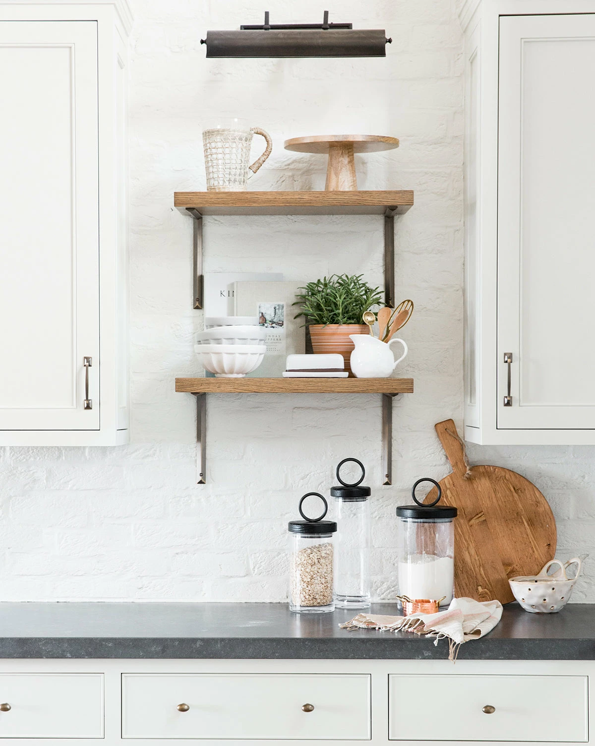 Wall sconces can be tricky to add, but that doesn’t mean they shouldn’t be done! We love this picture light affixed to built-ins, or at your bedside for the perfect amount of reading light to help you catch up on your classics.