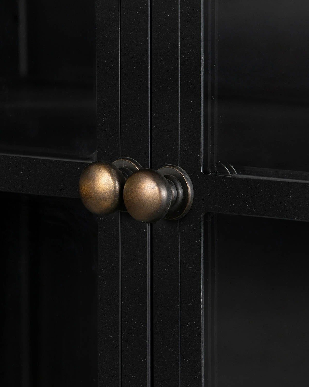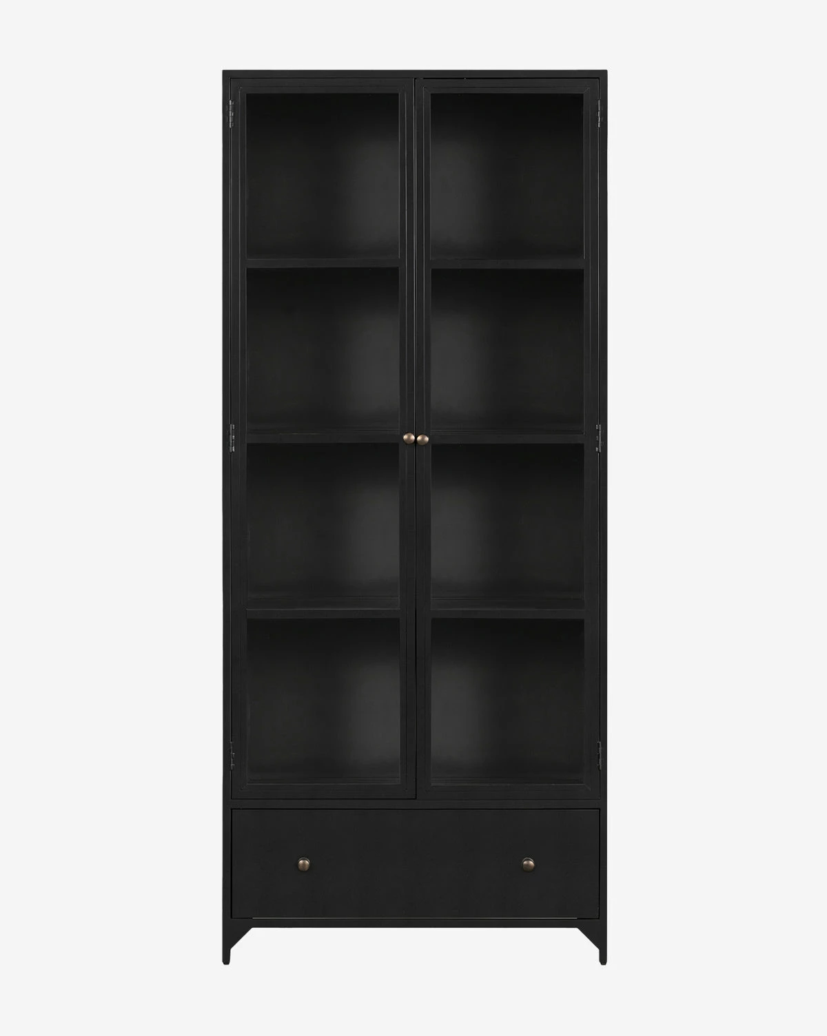 The elongated Deano Cabinet brings an elevated quality to traditional hutches. Its moody, black hue gives center stage to your favorite decorative pieces, while its solid, matte iron form subtly contrasts with classic brass hardware for an elegant touch.