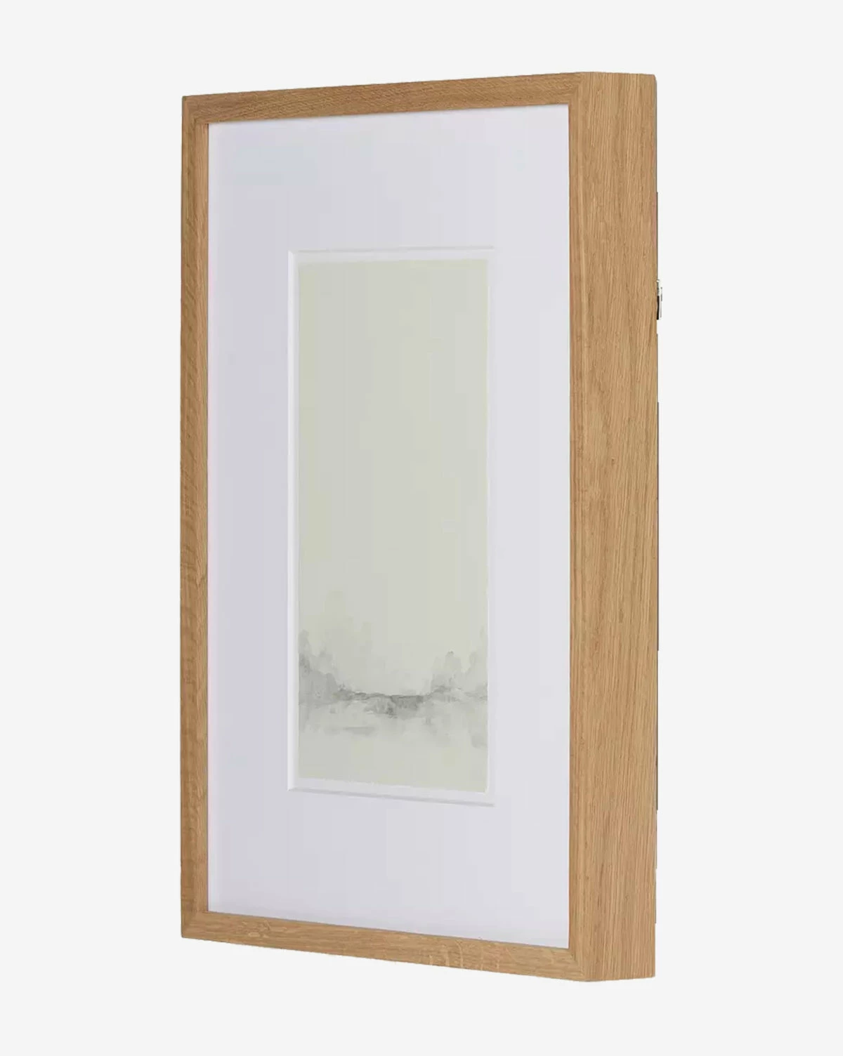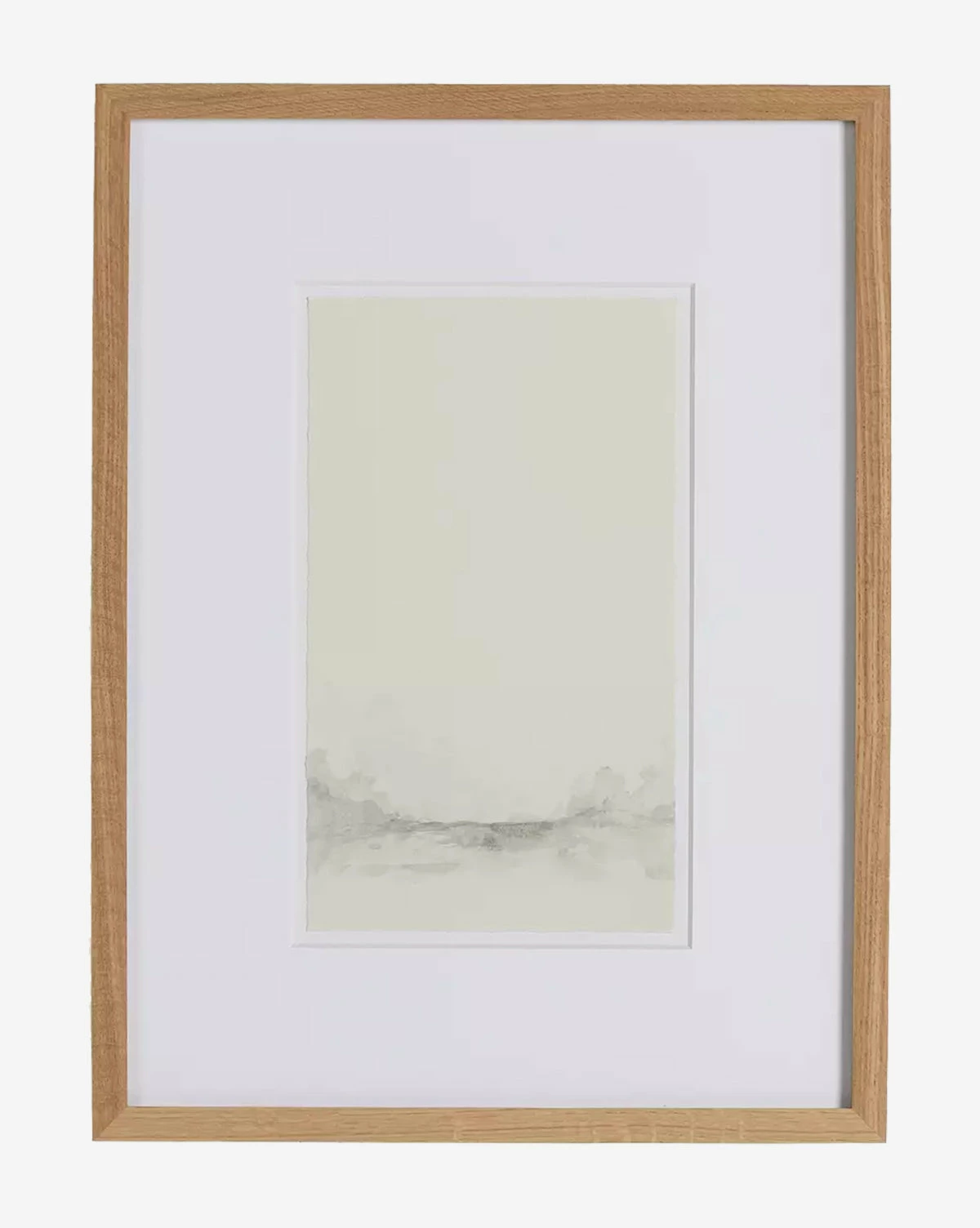 An ethereal landscape in a distinct composition, December Sky is elegant and emotive. A giclee print within a vertical grain white oak frame, the piece by Karen Covey adds character to your wall treatments or dresser vignettes.