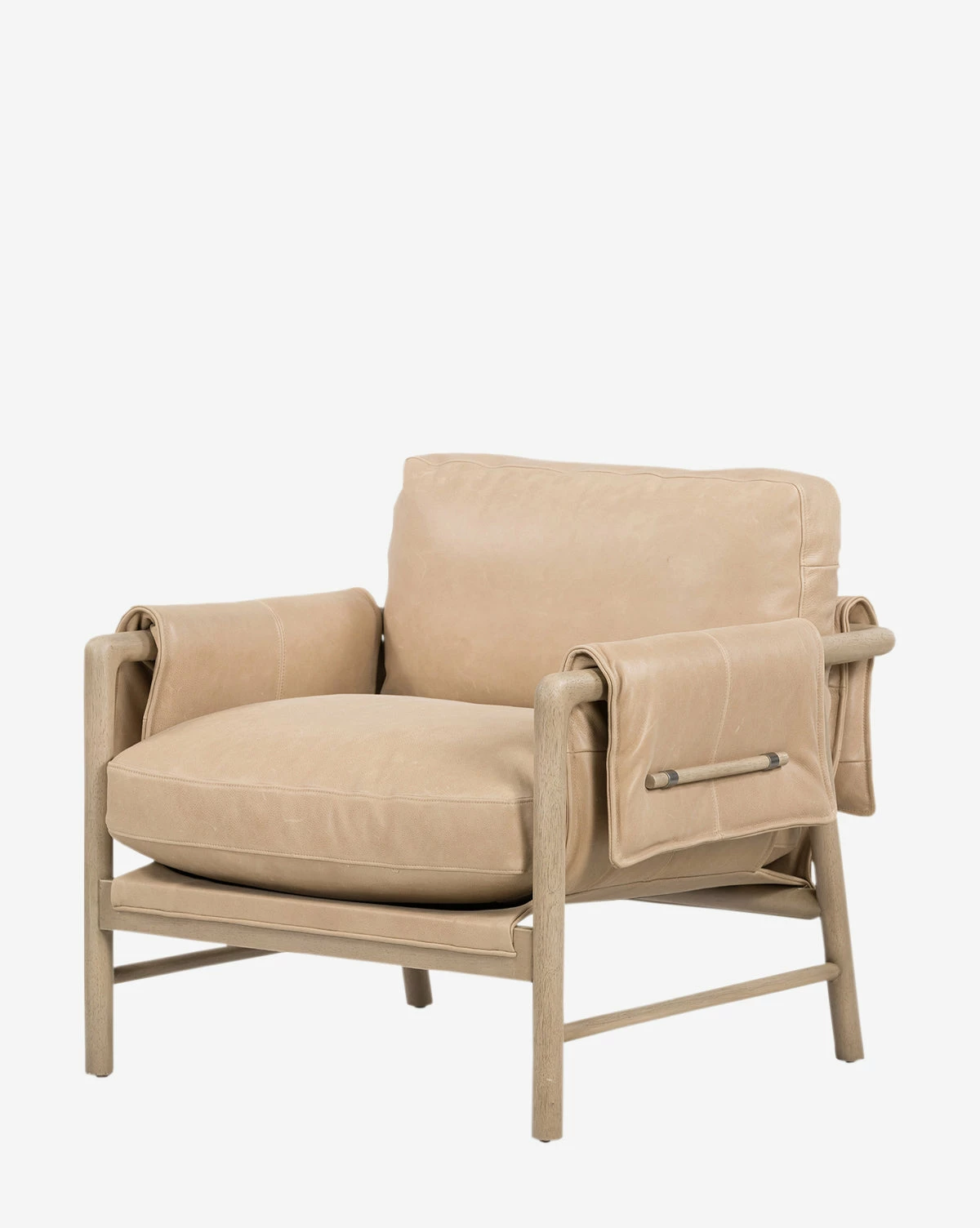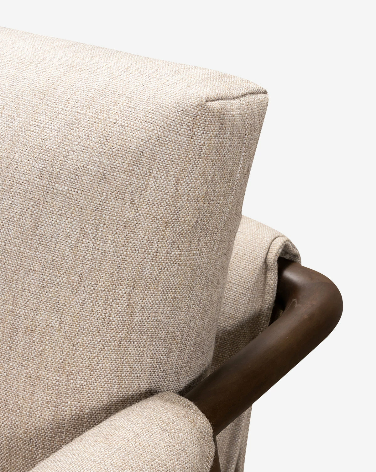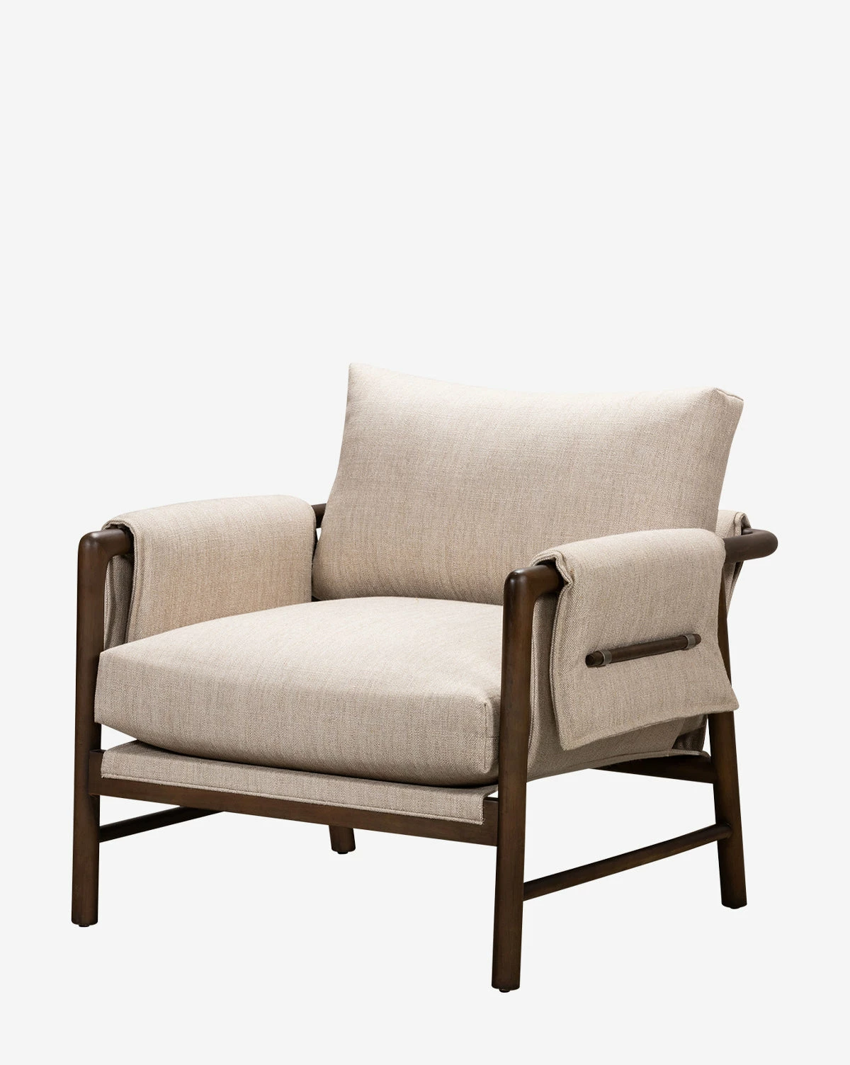 From the plush cotton-blend upholstery to the vintage-inspired parawood frame, the Demarco Lounge Chair brings the best of both form and function to your living space. Luxuriously comfortable, this chair is all about the details with wrapped arms and faux toggles, all completed in one of two warm, neutral finishes.