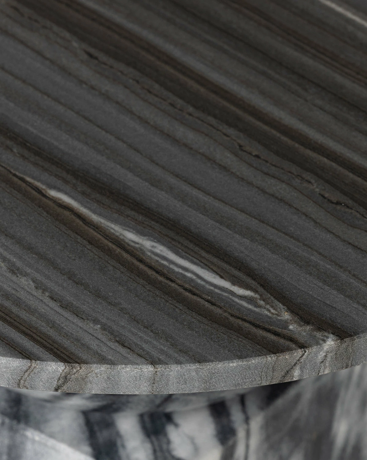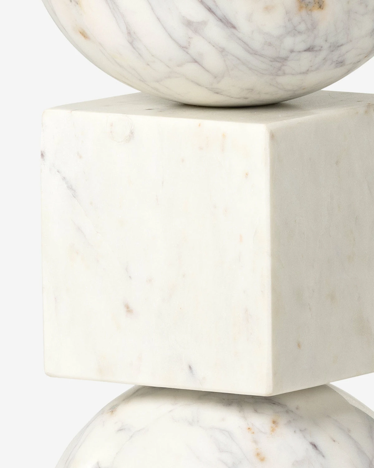 Subtle detail and a sculptural form create a beautifully cohesive piece with the Dobbin End Table. Crafted from polished marble, the geometric stacked shapes rest under a smooth table top, for a deco-inspired look.