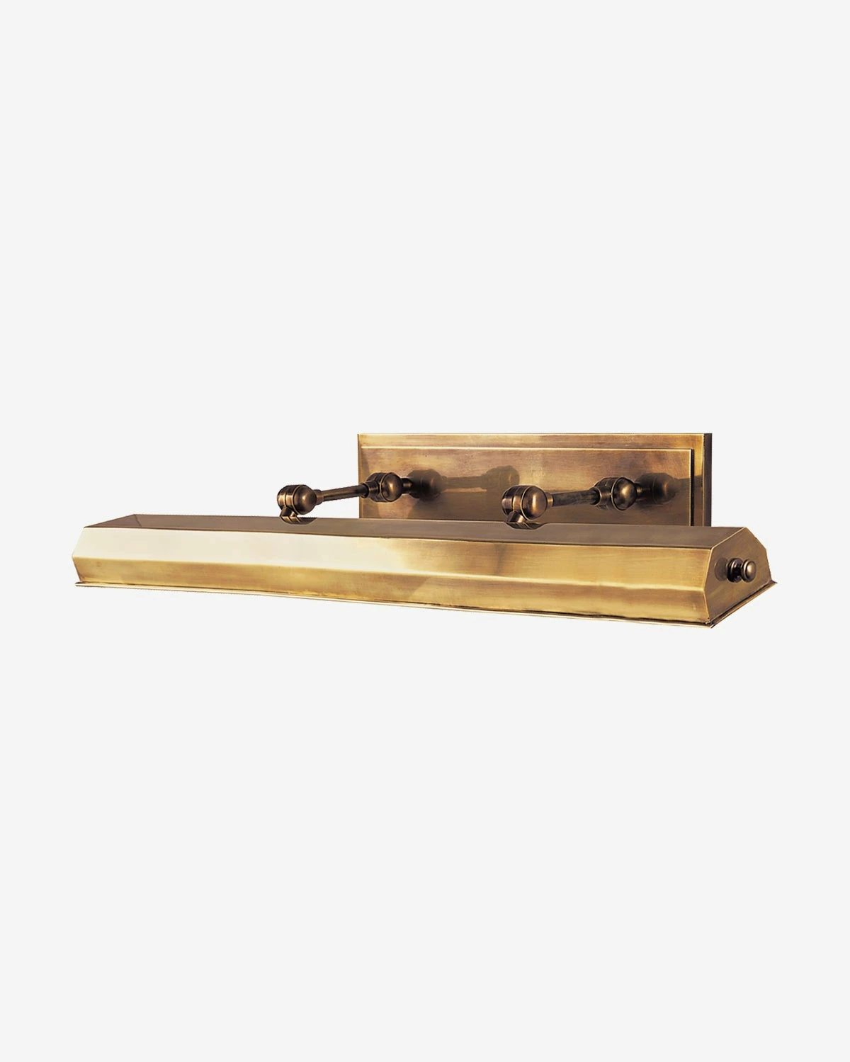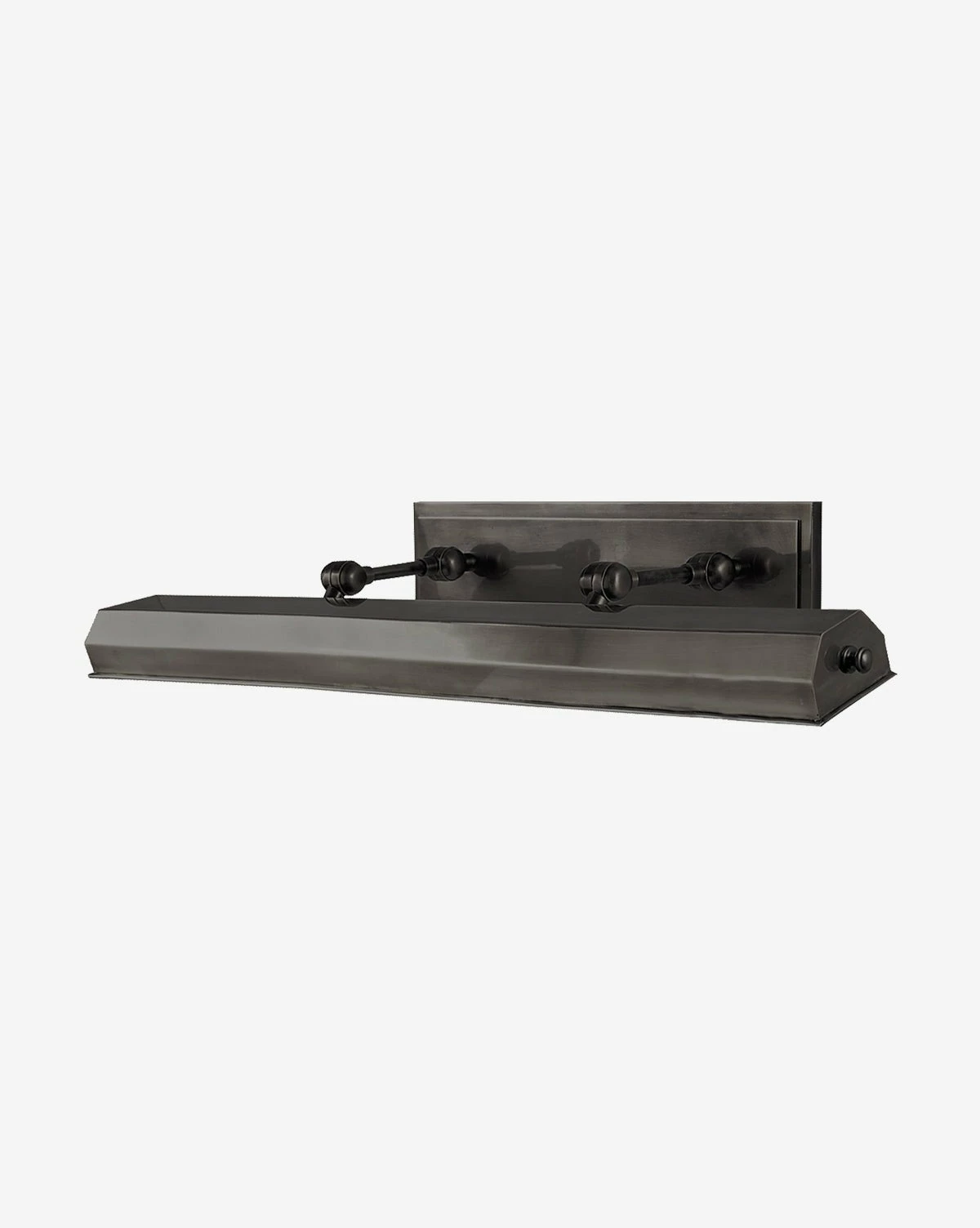 In four refined finishes, the Dorchester Picture Light is intricate and classic. Its geometric and elongated metal shade is suspended by vintage-inspired hinges connected to its simple back plate, bringing character to your living space.