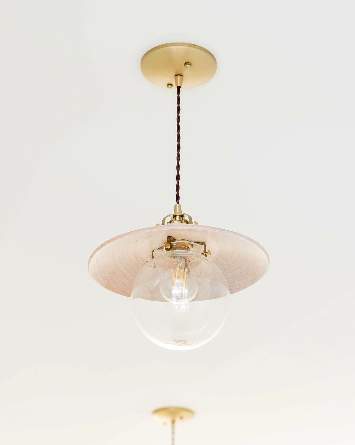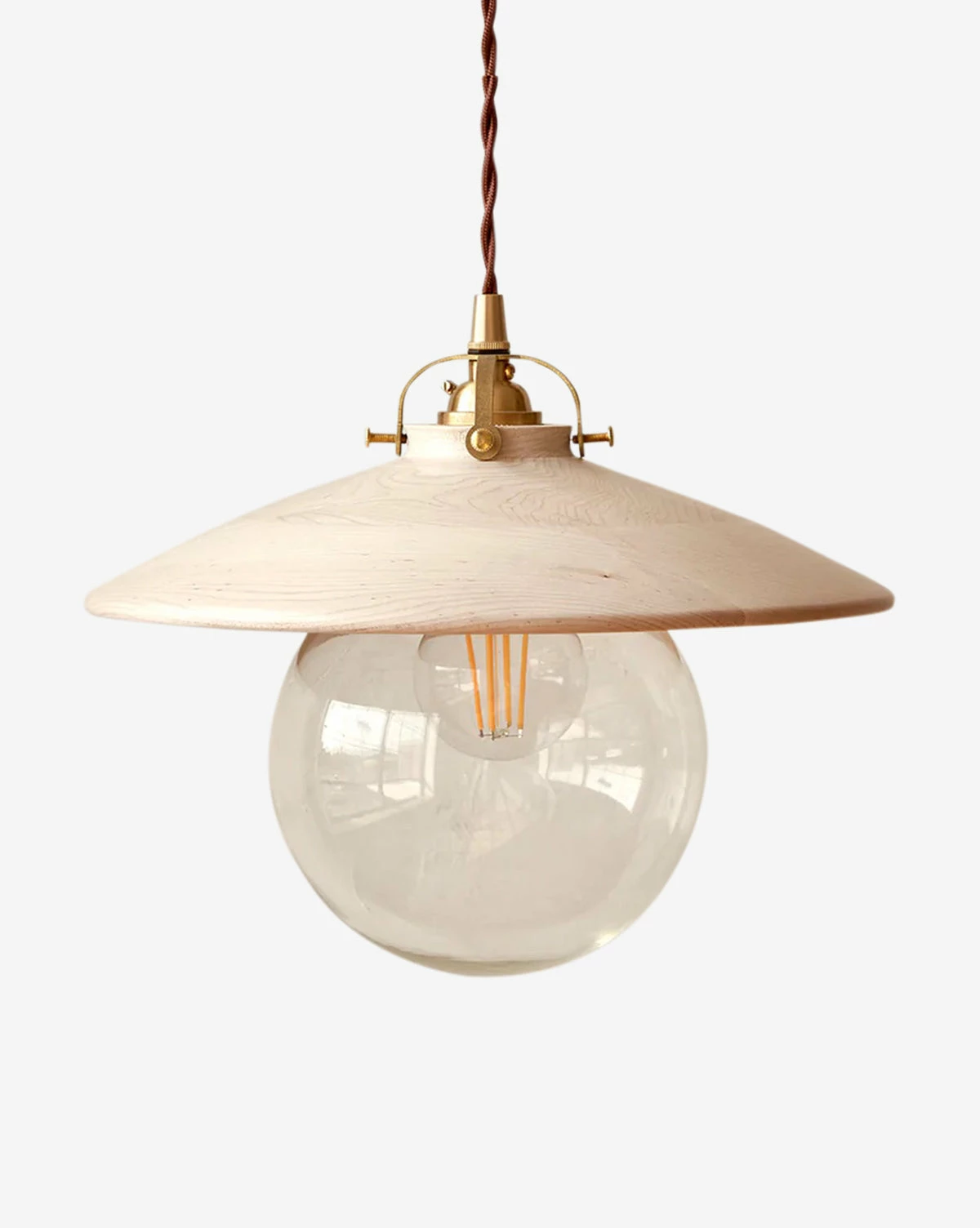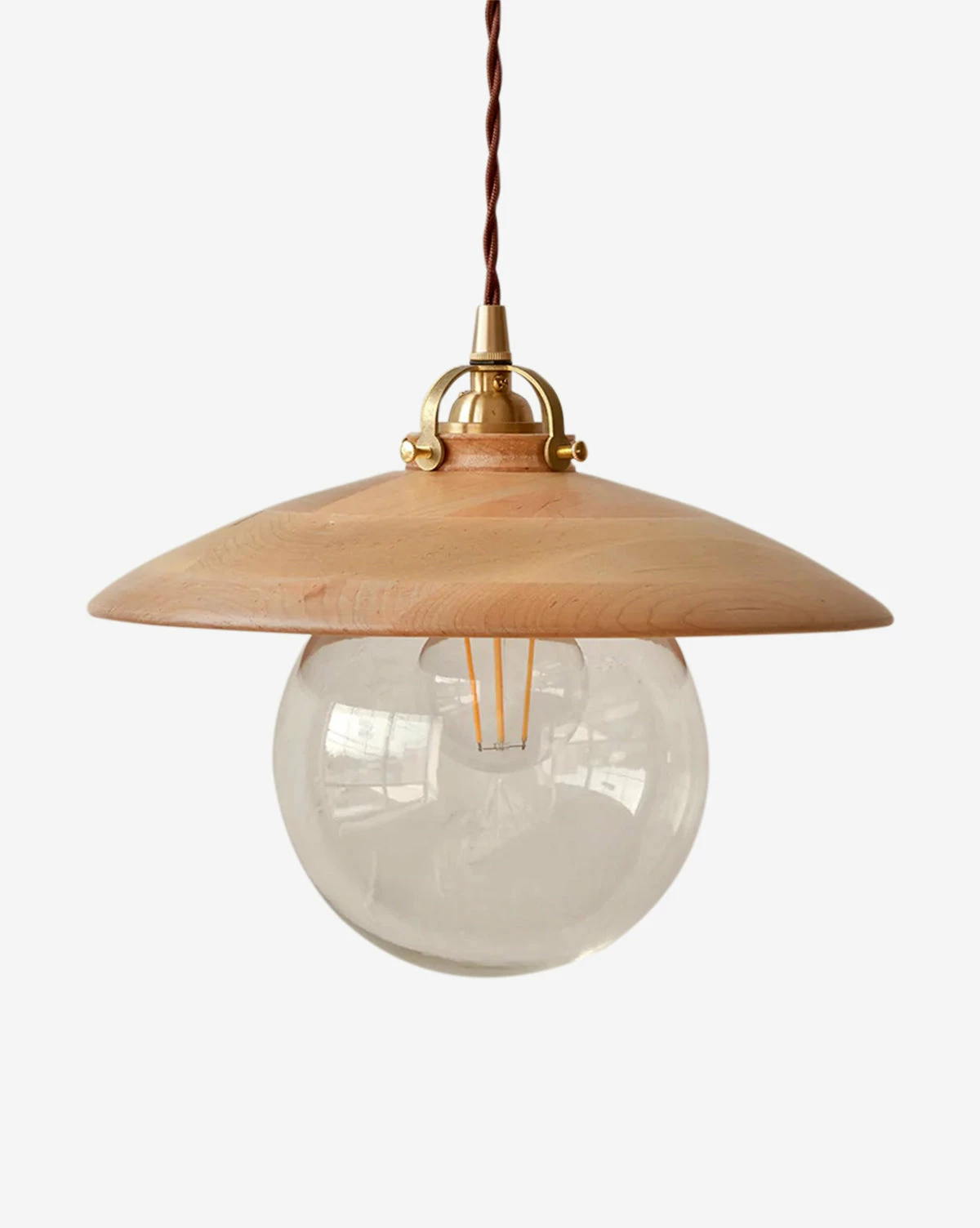 The Edmund Pendant is an unexpected twist on the ordinary with handcrafted quality. Its handmade wooden shade frames a slightly oversized bulb for a play on scale and an eclectic mix of style.