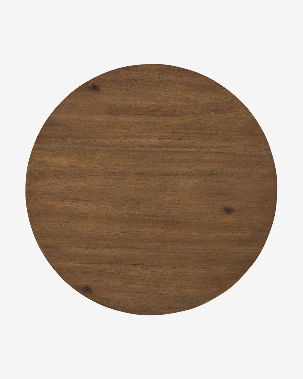 Crafted from acacia wood, the Eleazar End Table is a study in shape. With crescent-shaped legs that support the smooth, circular top, the end table brings its stately organic presence to your space. The coffee table is available in a rich brown or sandy finish.
