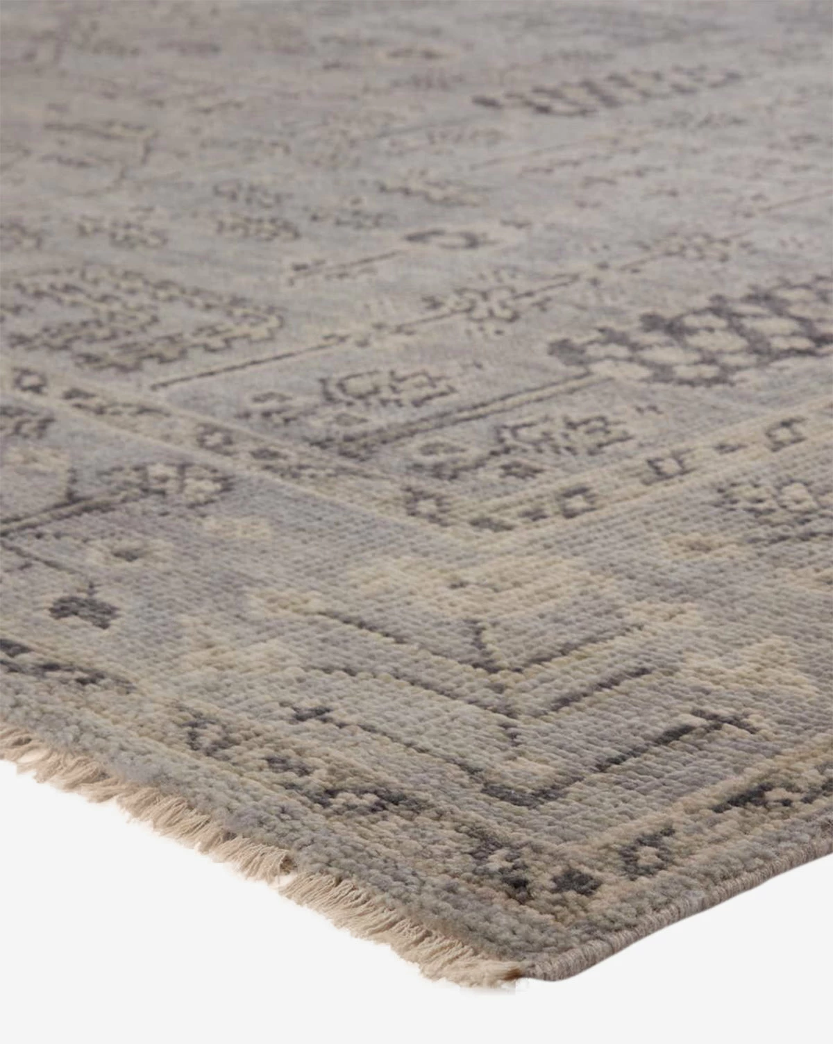 Boasting an aged, sun worn feel, the Elmont Hand-Knotted Wool Rug uses vintage motifs and a tonal palette to create a transitional statement that grounds your space. With an intricate pattern hand-knotted in wool, this artisan rug is soft and durable with details that accentuate its distressed, contemporary aesthetic. Â