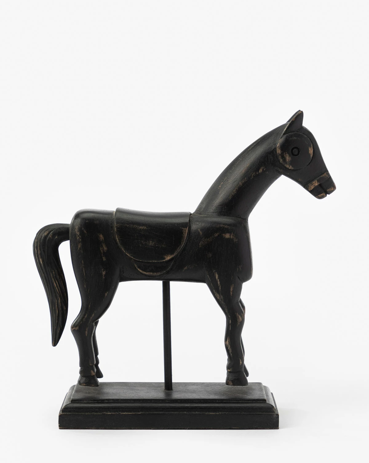 Classic yet captivating, the Equestrian Pedestal Object makes a subtle statement with its character and form. The wood horse is finished in weathered black and presented on an iron pedestal, bringing interest to vignettes.
