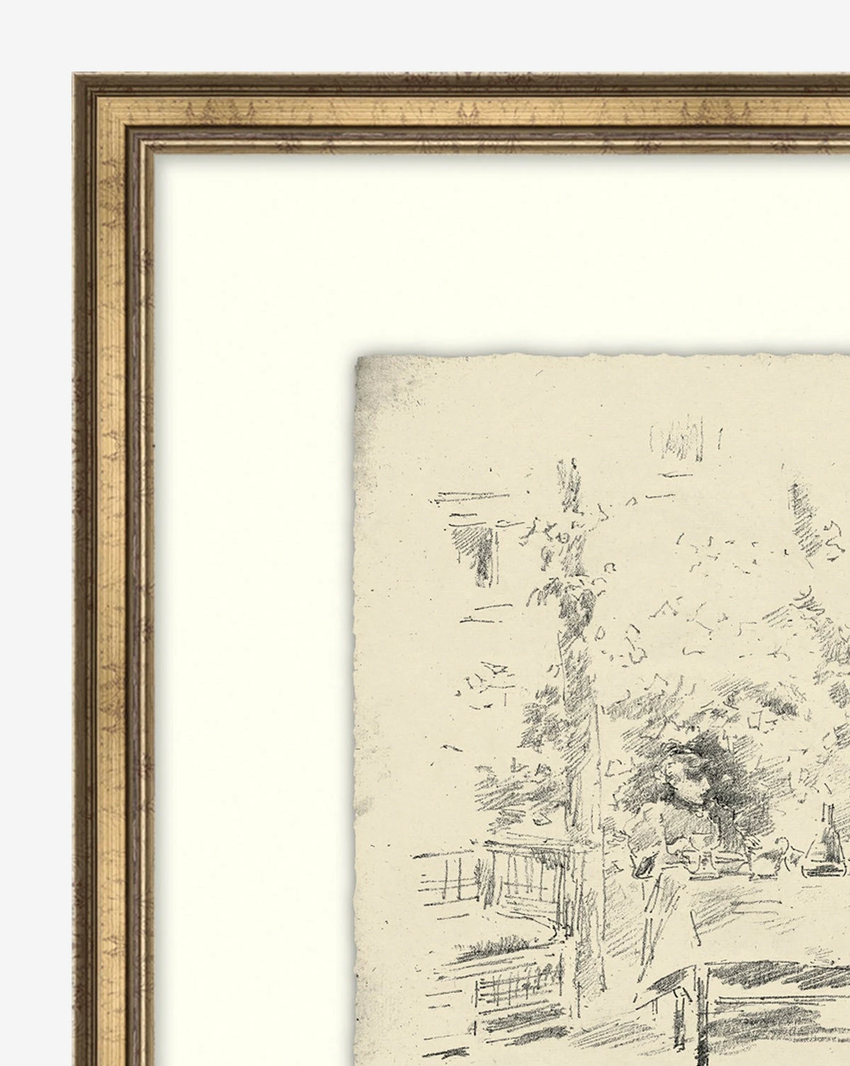 This etching piece features a simple lunch time scene that pulls the viewer in to appreciate the unique art process through which it was made.