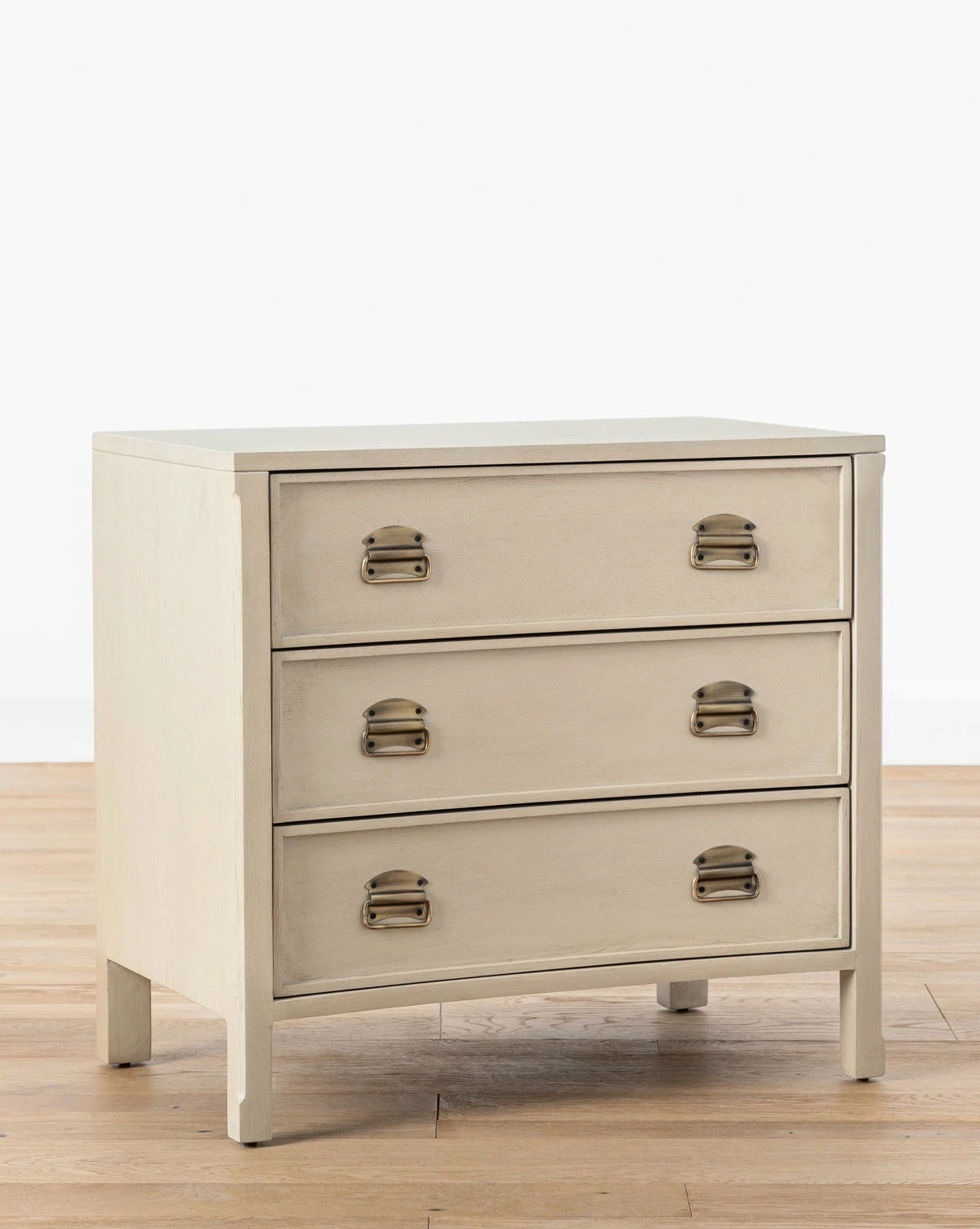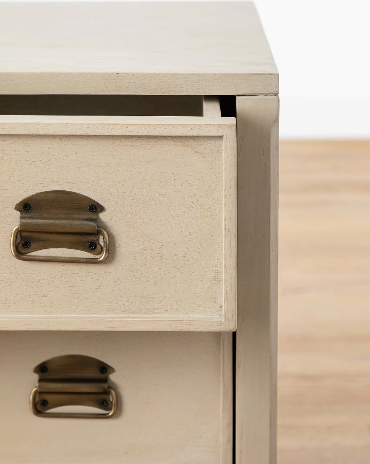 Our Mackenna White Oak Nightstand was created with a straightforward design and a keen attention to detail. Crafted from oak wood and finished with brass pulls, this nightstand features plenty of storage alongside its slightly curved front and chamfered legs.