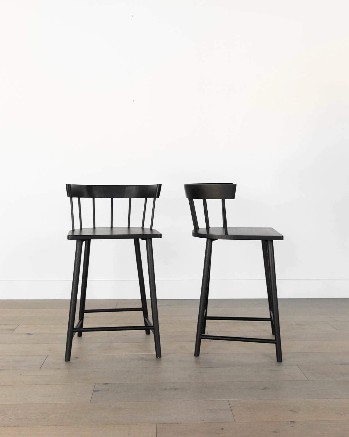When we designed the Reeves Stool, we wanted to mesh contemporary and traditional styles seamlessly, and we think we did just that! From the spindles, to the architectural base finished off with tapered legs, this stool redefines classic design through its thoughtful attention to detail. Crafted from solid, kiln-dried oak and finished in a modern black hue, this bench adds dimension to your kitchen space with ease.