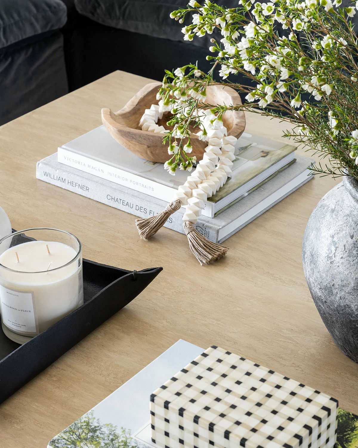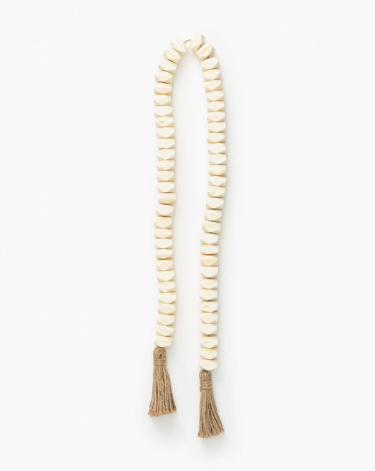 Perfect for adding a little bit of extra depth to your styling, the Faceted Bone Beads lend dimension with their creamy white hue. Finished off with a tasseled fringe, these beads bring life to bowls, built-ins or wherever they’re placed.