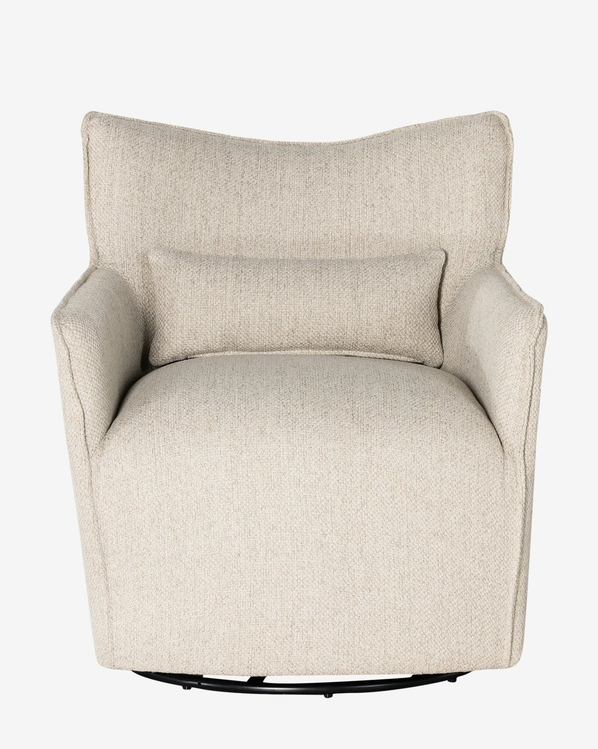 Balancing traditional lounge chair design with modern functionality, the Fairmont Swivel Chair is designed with luxurious comfort in mind. Its tailored feel and neutral fabric bring an inviting look to the chair, while its 360-degree swivel provides function.