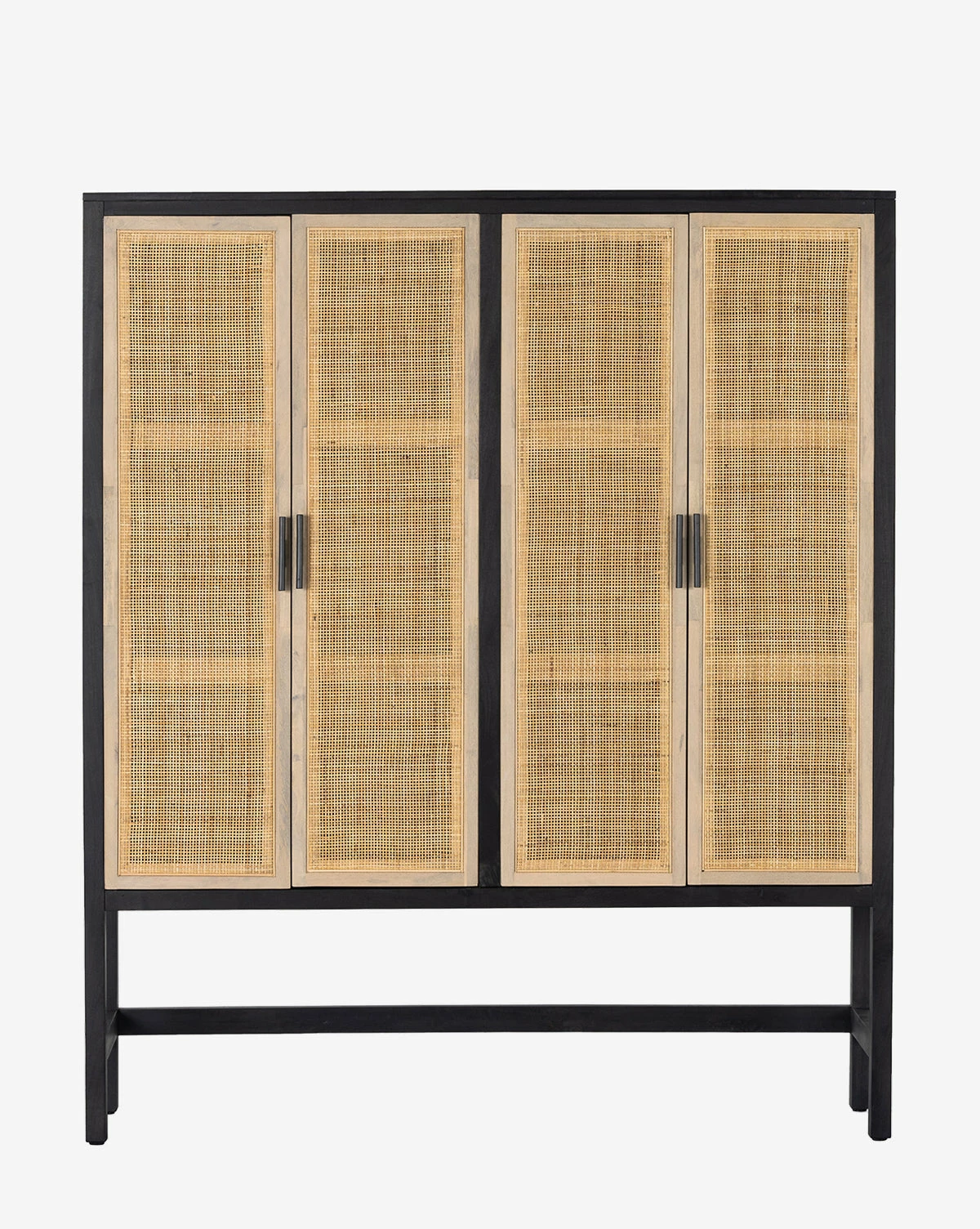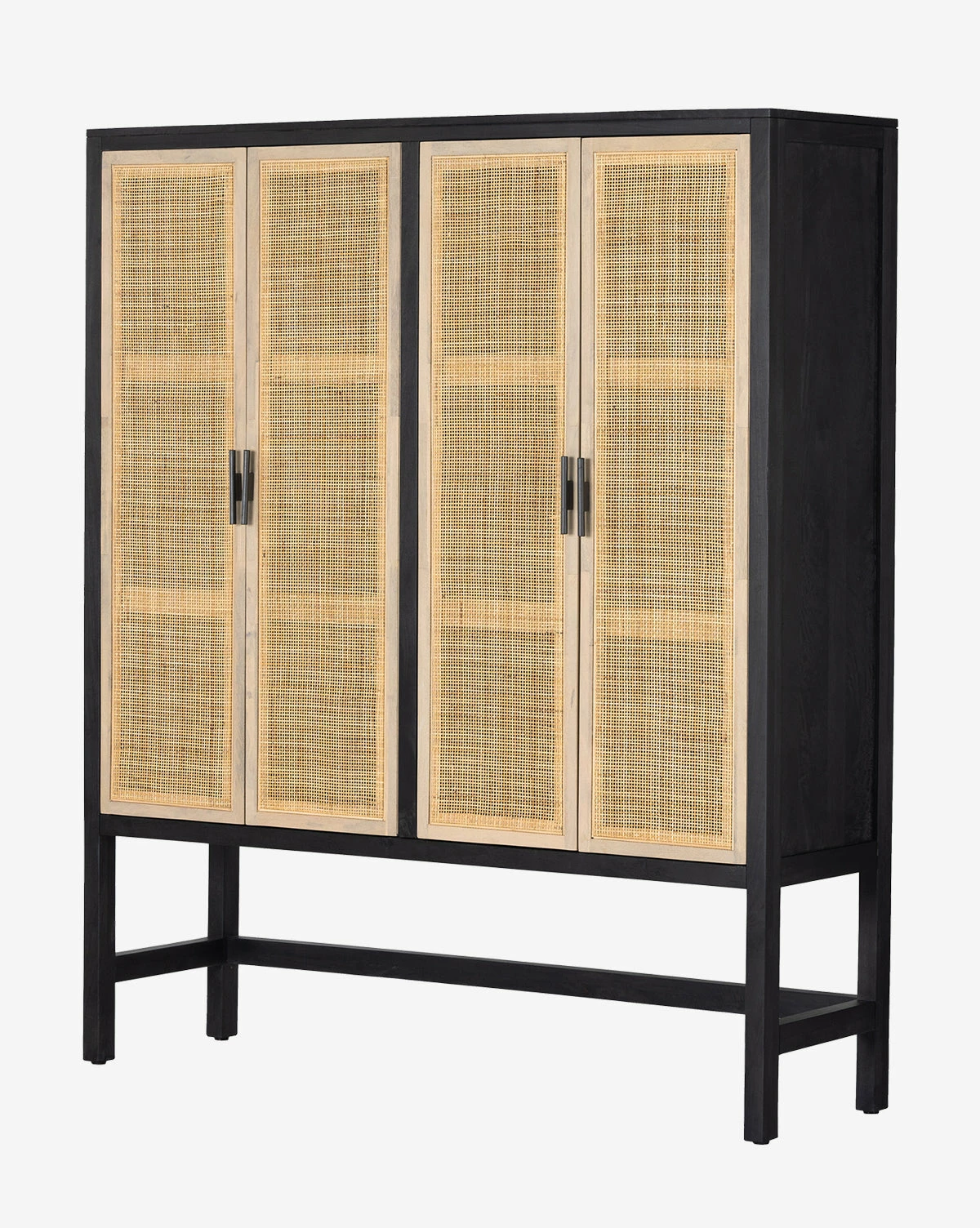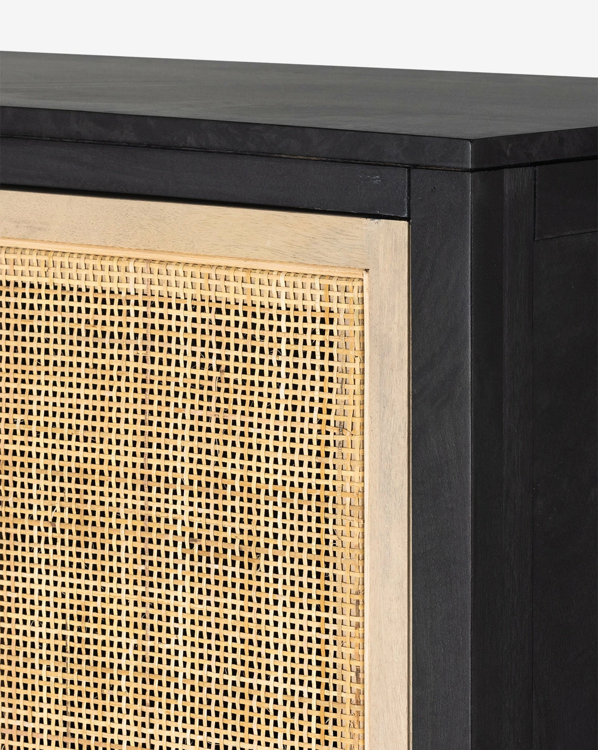 Carefully crafted in two unique colorways, the Fallon Cabinet makes a statement with its high-style form. Acacia wood shelving creates plenty of storage, while mango framed doors, woven with natural cane add an eye-catching piece to your home design.