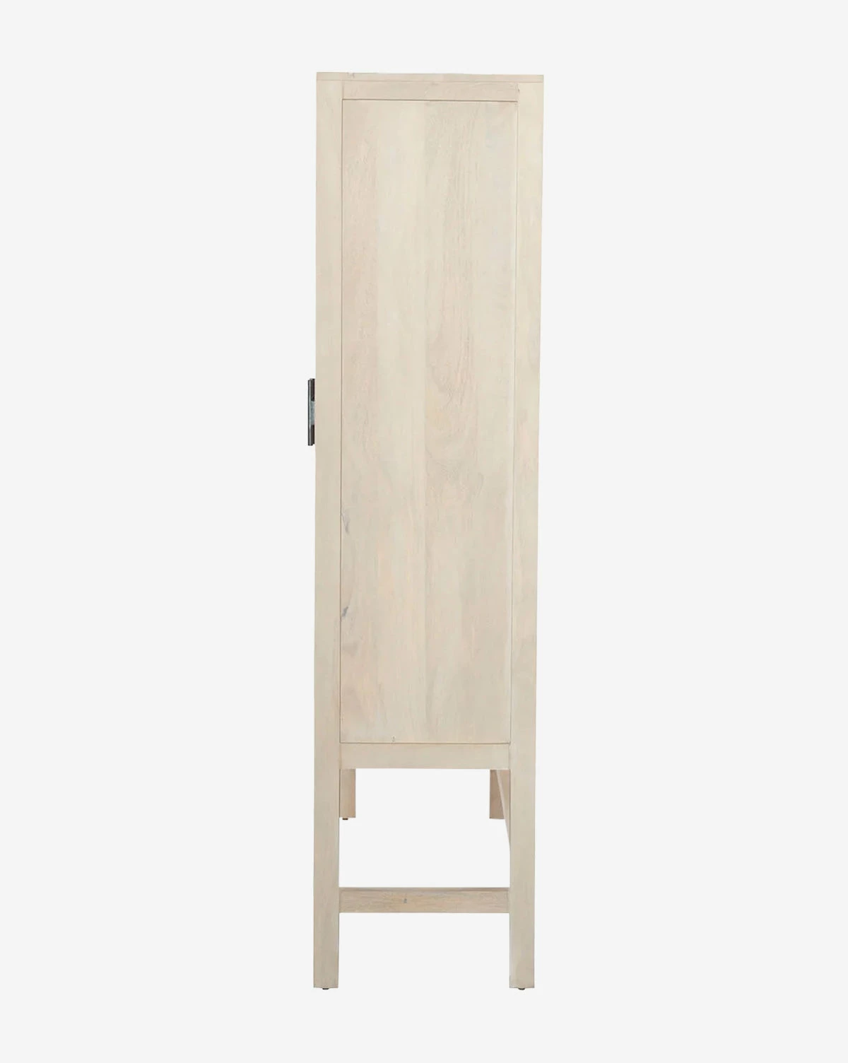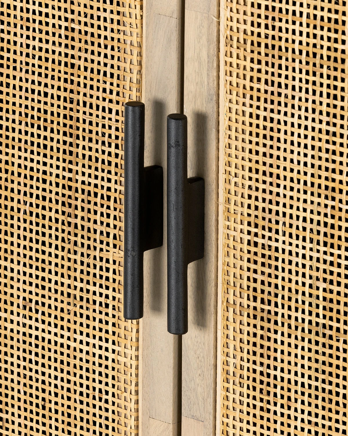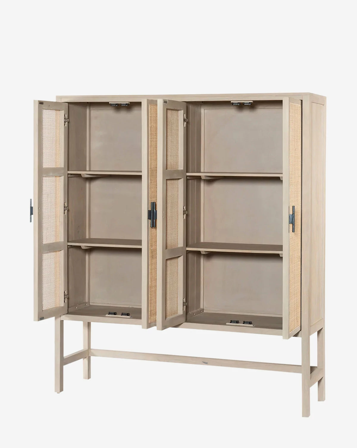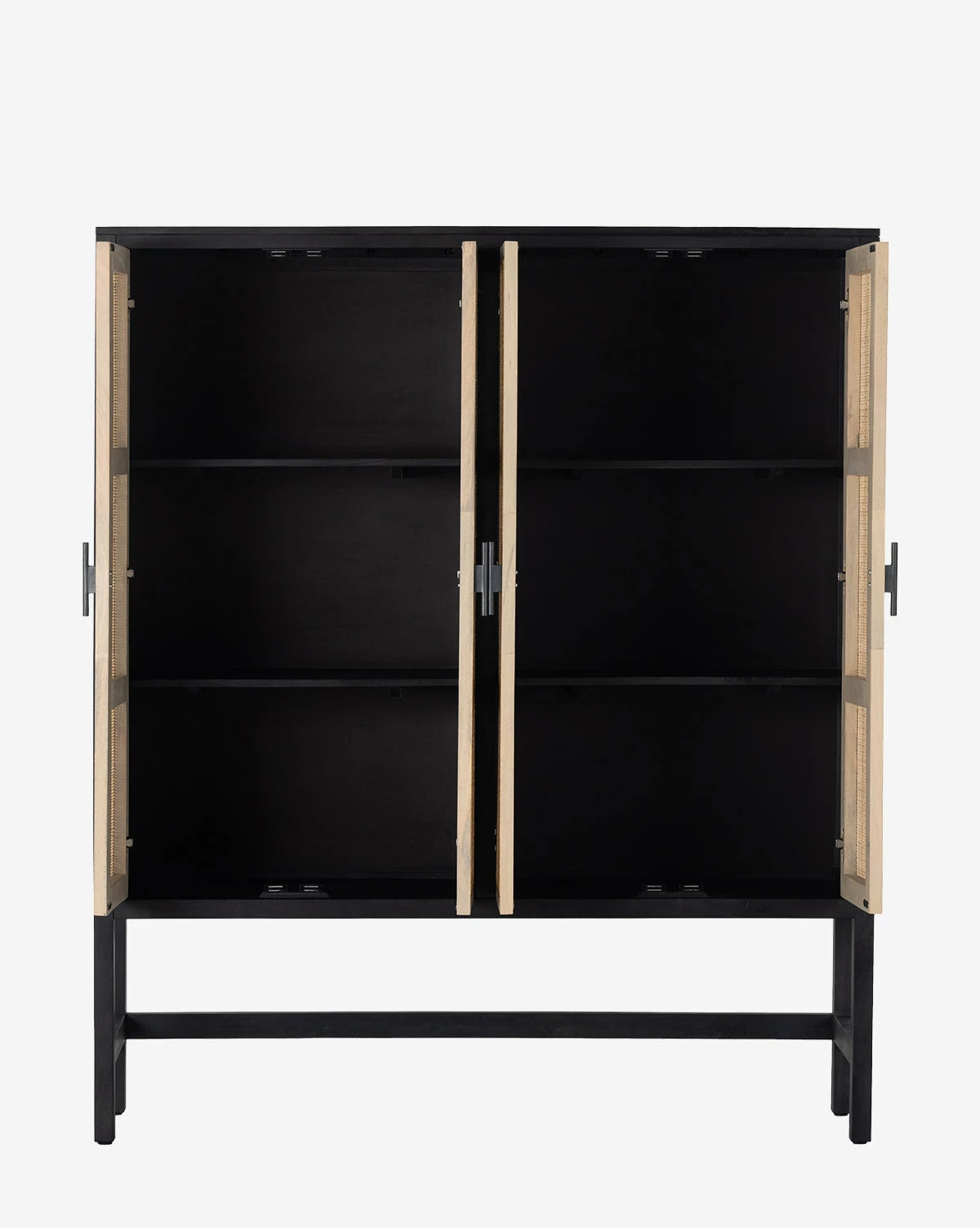 Carefully crafted in two unique colorways, the Fallon Cabinet makes a statement with its high-style form. Acacia wood shelving creates plenty of storage, while mango framed doors, woven with natural cane add an eye-catching piece to your home design.