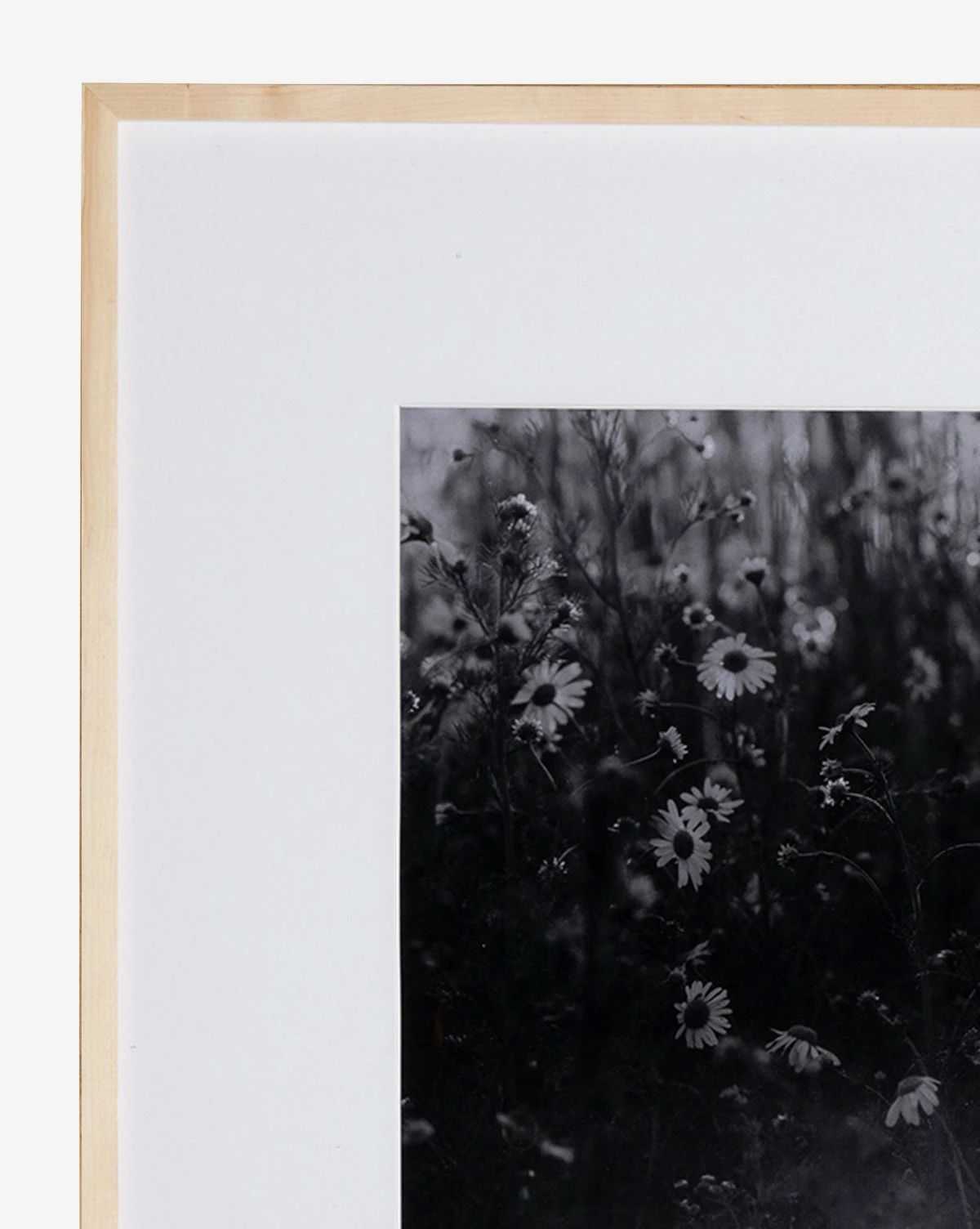 An exceptionally moody piece, Film of Florals is photographed by Annie Spratt. Capturing the fragility and strength of nature, this black-and-white piece is printed on top-quality photo paper and mounted on a double-thick white mat. Complete with an American maple frame and encased in clear acrylic, this dimensional piece adds a rich moment of emotion to layered vignettes or standalone wall decor.
