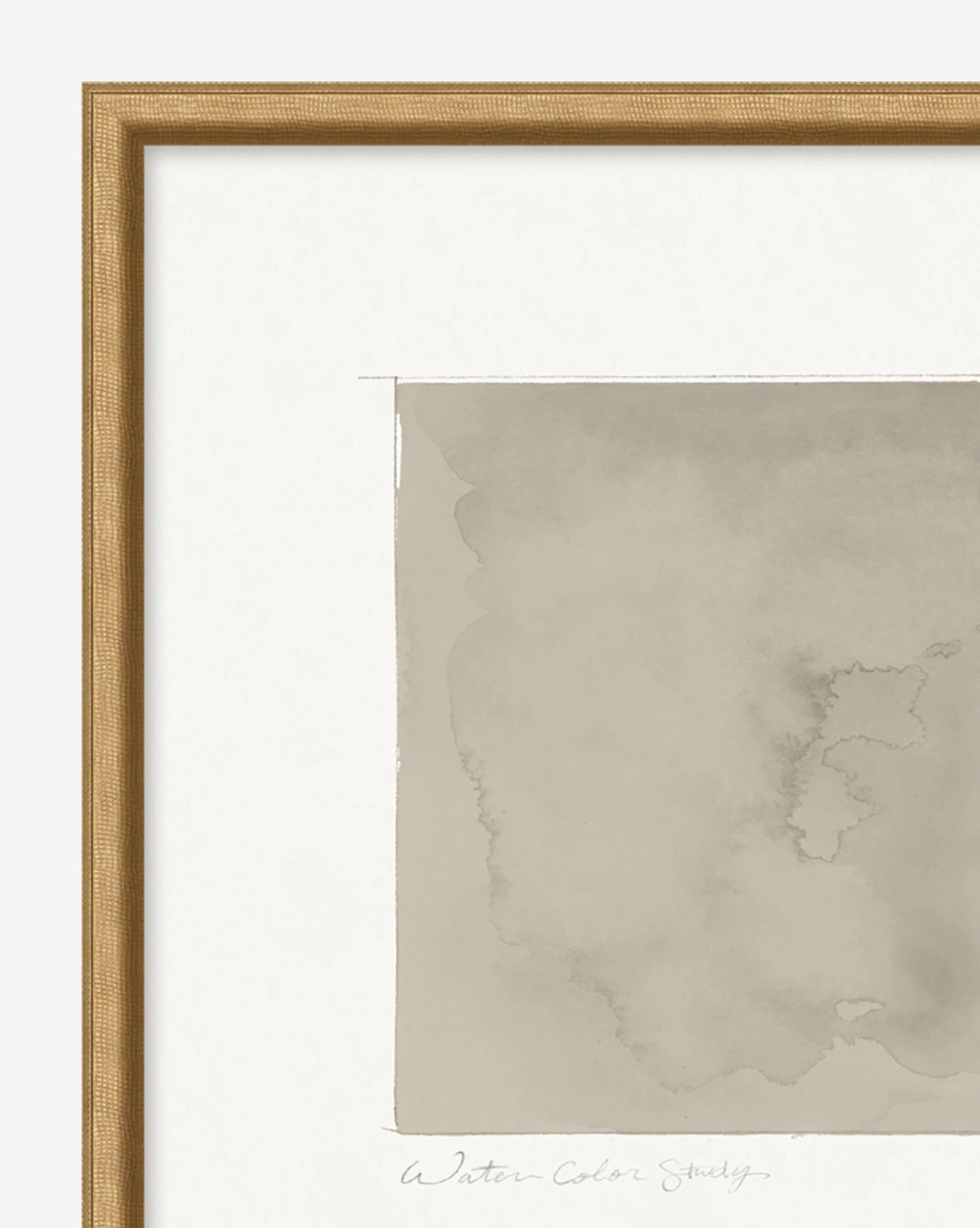 Abstract and textural, Fossil Study beautifully plays with hues of natural stone and gray. The giclee print on watercolor paper draws attention to the paintbrush texture within the richly colored square, adding depth to your decor whether styled alone or as a collection. With a scaled texture gold finish on the wood frame, this artwork boasts gallery quality through its elevated materials.Â